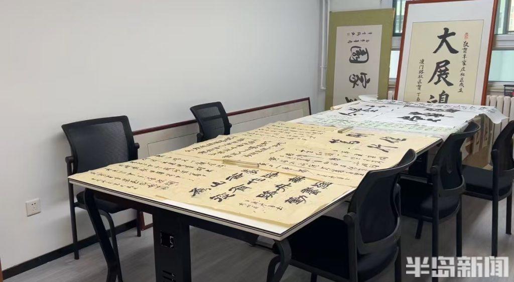 市南区珠海路街道辛家庄社区党群服务中心里的书法作品