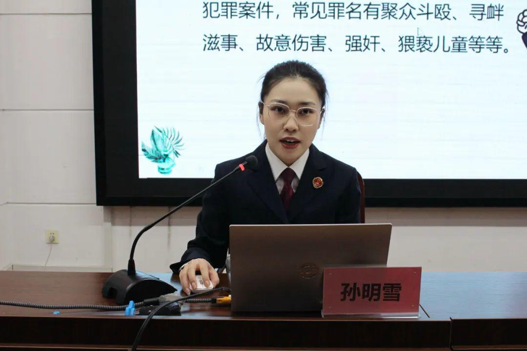 讲座上,孙明雪以真实案例为切入点,详细讲解了未成年人犯罪的成因、危害及预防措施,引导同学们如何识别违法犯罪行为,以及在遇到危险时如何运用法律武器保护自己。同学们听得津津有味,与孙明雪积极互动交流,现场气氛热烈而有序。