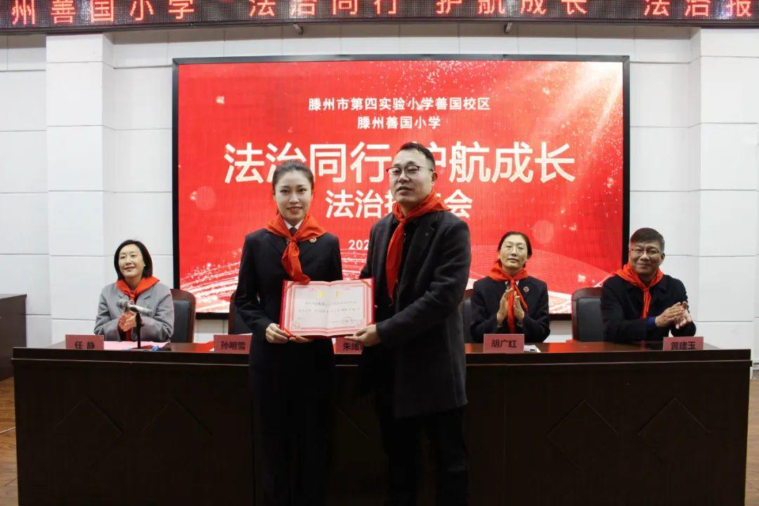 12月11日,滕州检察院第二检察部主任胡广红与检察官助理孙明雪走进滕州善国小学,开展了一场以“法治同行,护航成长”为主题的法治讲座,孙明雪被聘为该校法治副校长。