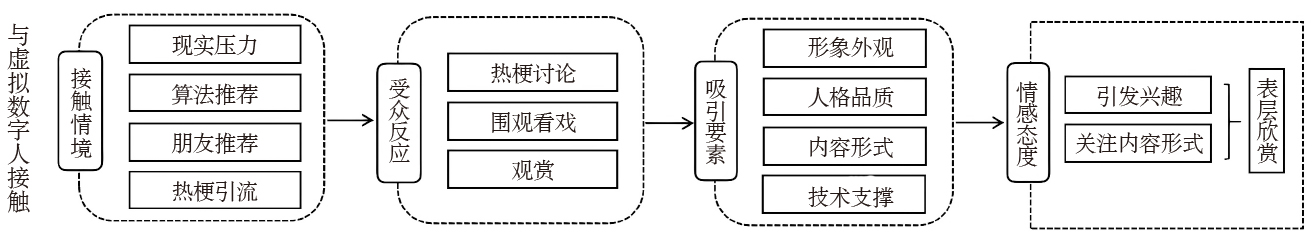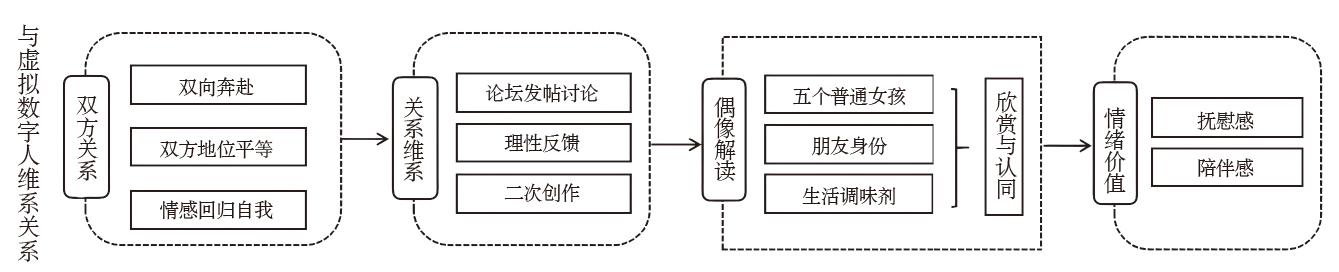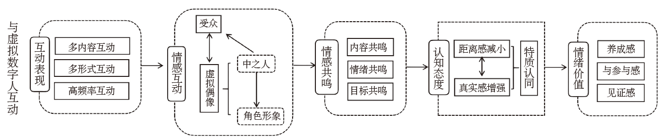 本研究基于情感互动的表层与特质两类模式,从虚拟数字人的追随者视角出发,旨在描绘粉丝与虚拟数字人的情感互动过程。