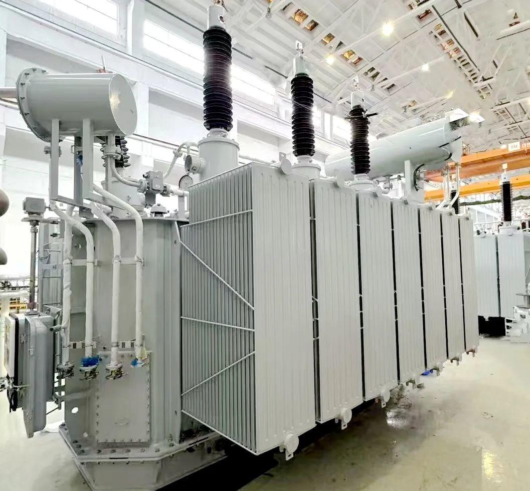 该产品开展了关键组部件如有载分接开关、阀套管配合等设计优化研究,对网侧500千伏绝缘裕度提升、网出线装置加强设计研究、阀出线装置配合绝缘屏蔽管设计研究等内容,进一步优化了换流变压器的设计方案,使产品具有高可靠性、标准化设计和主动预警保护的特点,保证产品一次安全产出及现场安全稳定运行。