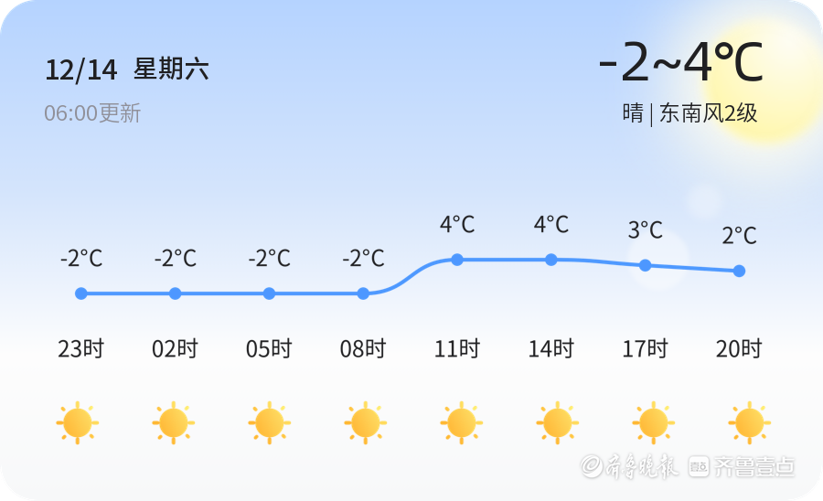 2024年12月14日,农历十一月十四,济南迎来晴朗的一天,但气温较低,早晨最低气温达到-4.2℃,白天最高气温也仅有4℃,伴有东南风2级,空气湿度为69%,空气质量良好,PM2.5浓度为58,属于良等级,空气质量相对清新,市民出行可适当减少佩戴口罩的时间。但早晚温差较大,建议市民穿着保暖衣物,特别是老人和小孩更要注意防寒保暖,避免感冒。同时,晴朗天气下紫外线较强,外出时请做好防晒措施。