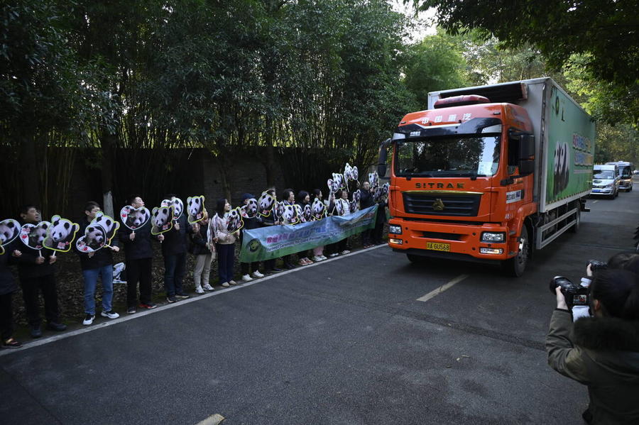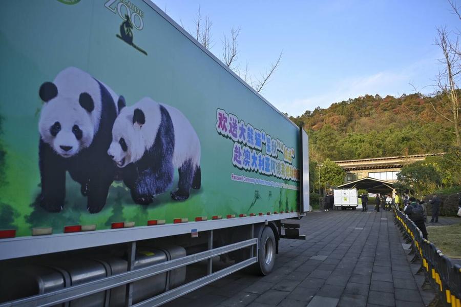 12月14日上午9点,大熊猫“星秋”“怡兰”从中国大熊猫保护研究中心(以下简称“熊猫中心”)都江堰基地出发前往澳大利亚阿德莱德动物园,开启为期10年的旅居生活。