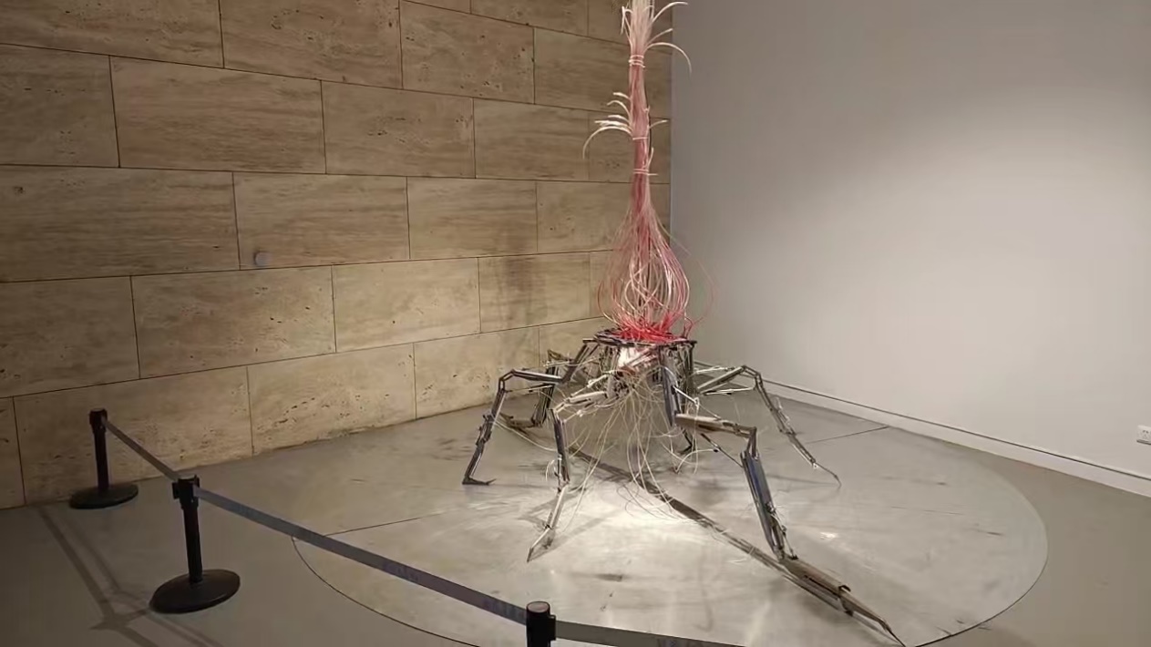 至于这个会动的“多脚机械”,据介绍名叫《异体》,说实话让胆子不大的小编有点害怕。因为它由透明塑料管组成的“头”里,还流动着红色液体呢。