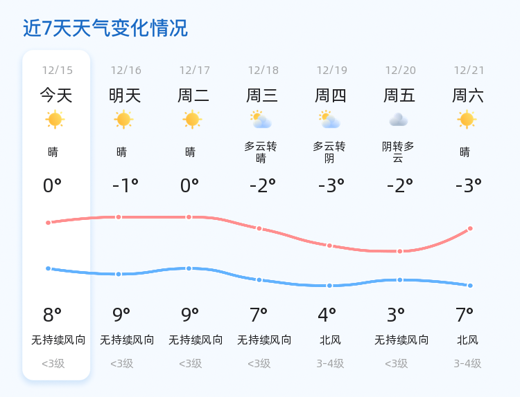 未来三天,日照市将继续保持晴朗或多云的天气趋势。具体来说,12月17日,天气晴朗,气温在0℃至9℃之间波动;12月18日,天气多云转晴,气温略有下降,最低气温将降至-2℃,最高气温为7℃;而到了12月19日,天气将转为多云转阴,并伴有3-4级的北风,气温进一步下滑至-3℃至4℃。针对这种天气变化,市民需密切关注气象信息,合理安排出行计划,并适时添加衣物以应对寒冷天气。特别是老人和小孩等易感人群,更需做好防寒保暖措施。