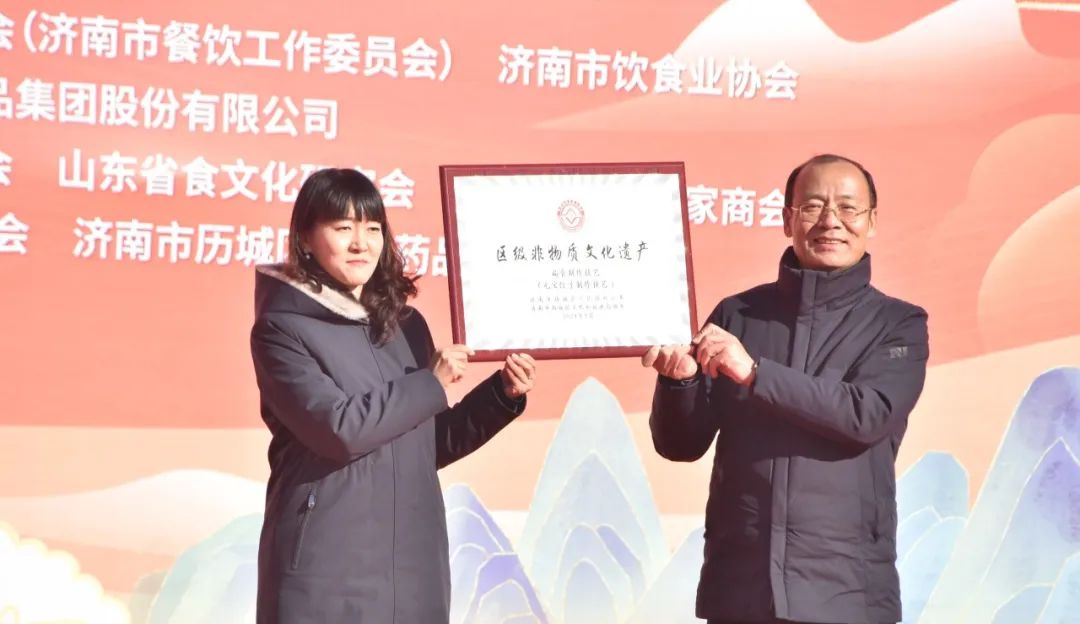 活动现场,玖久同心集团“手工元宝饺子非物质文化遗产”正式授牌,此前,玖久同心食品集团的扁食(元宝饺子)制作技艺被收录进非物质文化遗产名录,这是传统与未来的对话,是对文化的敬畏和对传承的庄重承诺。