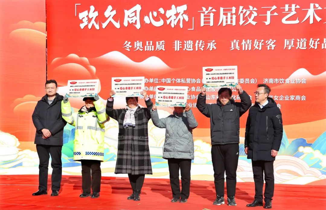 在文化节现场,山东玖久同心食品集团秉持回馈社会的理念,向当地公益服务组织捐赠了精心准备的爱心手工非遗水饺,传递了冬日的温暖与关怀,展现了企业的社会责任与担当,赢得了社会各界的广泛赞誉。