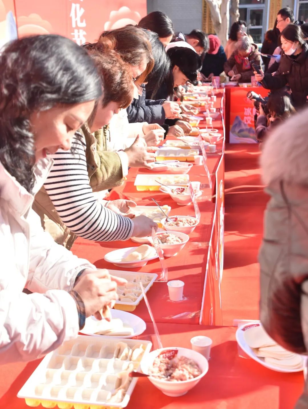 本届盛典现场精彩纷呈,活动中安排了丰富多彩的节目表演与比赛,其中,“玖爱包饺”包饺子比赛成为众人瞩目的焦点。参赛者们灵巧的手指在面皮与馅料间舞蹈,选手们纷纷展示自己的包饺子技巧,现场气氛热烈。而“玖爱吃饺”大胃王挑战赛也同样火热,参赛者们纷纷展现出自己的食量,现场气氛热烈,把文化节推向了高潮。