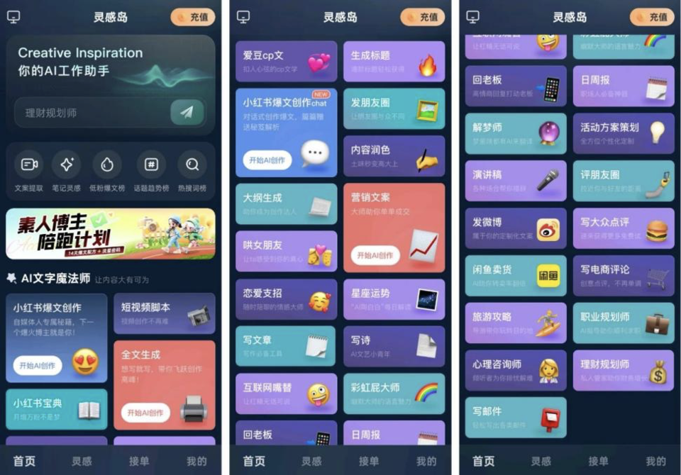 以AI+大数据赋能内容创作、以技术实现爆款文案生成,从写作效率到文本质量,打造全新的创作方式,助力内容创作者快速成长。自去年推出以来,灵感岛APP凭借其强大的内容创作能力,已为数十万内容创作者提供了数千万条高质量的内容输出,极大地提升了创作效率与质量。而此次新版本的上线,不仅是在技术上的一次全面升级,更是对C端市场的一次深度布局。通过开放C端服务,灵感岛将能够更直接地触达内容创作者的需求,为他们提供更加便捷、高效的创作工具,进一步推动内容营销的智能化发展。