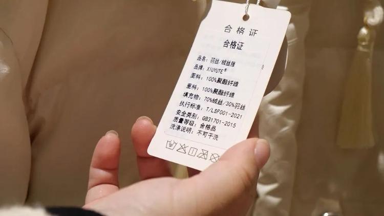 近日,记者来到江西省九江市一处羽绒电商创业园,这里的4家企业不久前被曝光以“丝”代“绒”,吊牌虚标材质,涉嫌以次充好。记者探访园区内多家服装店后发现,店铺挂售的羽绒服装已经全面更新了吊牌标识,以符合新国标要求,另有一些服装吊牌上则标明填充物为“羽丝”“绒丝”。