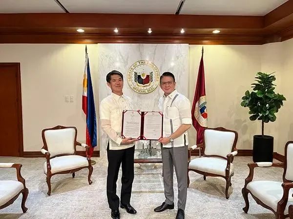 菲律宾参议院议长埃斯库德罗(右)与日本驻菲大使远藤和也的合影 图源:日本驻菲律宾大使馆