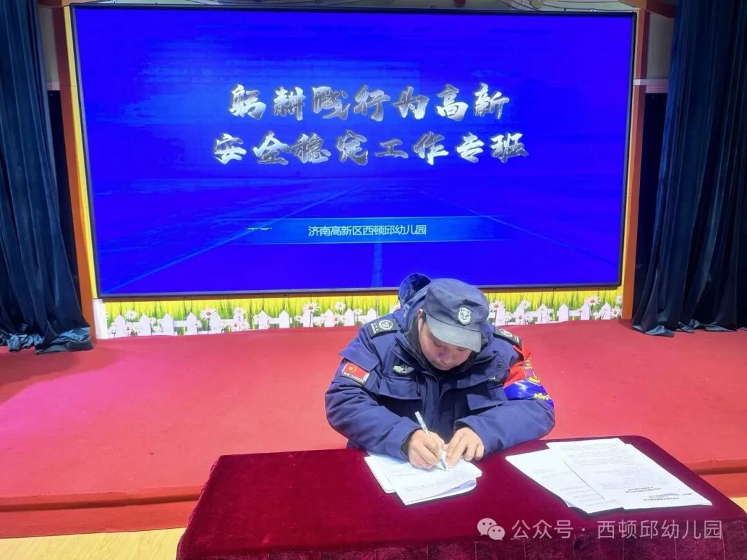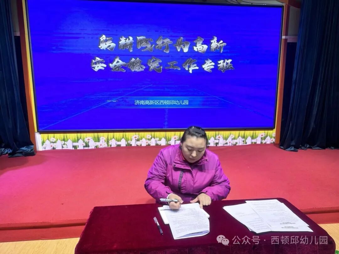 幼儿园严格贯彻落实会议精神,成立以园长为第一责任人的安全稳定工作专班,并进行任务分解、责任到人,下设周边综合治理小组、消防整治小组、交通整治小组、矛盾纠纷化解小组及舆情应对处置小组,层层压实安全责任,织紧织密安全网,确保校园安全稳定。