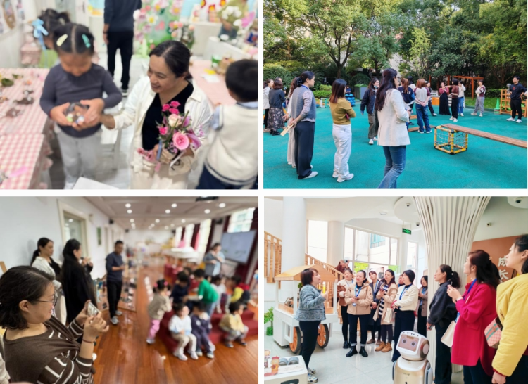 跟岗学习过程中,老师们深入班级,观摩了学习、生活、运动、游戏四大模块的组织与实施,沉浸式参加幼儿园社群研修、操作式教研、体验式教研等各种形式的教研活动,全方位了解了幼儿园一日活动的组织开展和教师教研活动。在观摩“小社团活动”的过程中,老师们深切体会到艺术浸润的力量,以及这一过程中幼儿学习品质的成长与进步。通过观摩不同幼儿园的幼儿入园、个别化学习活动、无边界户外活动、生活活动、户外运动等环节,老师们近距离地感受着上海幼儿教育的细节,自在的生活、和谐的关系、游戏与学习的融合、快乐与经验的共享,富有特色的环境创设,使每位老师都深受触动和启发。