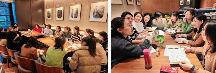 除了交流共享学习收获,园长、老师们讨论最多的还是如何落实的问题。在老师们主动发起的学习中,她们或召开圆桌会议,或组织小组互动式教研,或开展餐前畅谈会,对每日所学亮点、教育可行性点子、领域前沿信息进行全方位梳理总结。聚焦学前教育热点、难点、重点,用好与上海名师、名园长面对面交流的机会,在问题探讨、经验共享、思想启迪、智慧碰撞中不断丰富自己的教育理念、专业认知,进一步优化教育实践。