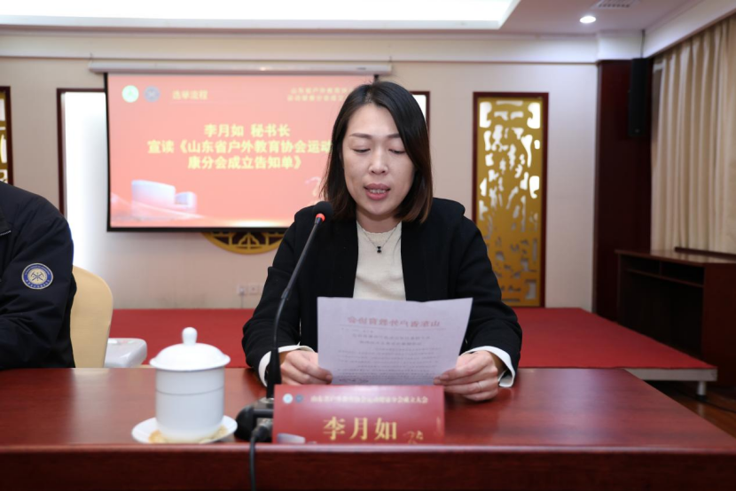 首先,由李月如秘书长宣读《山东省户外教育协会运动健康分会成立告知单》。