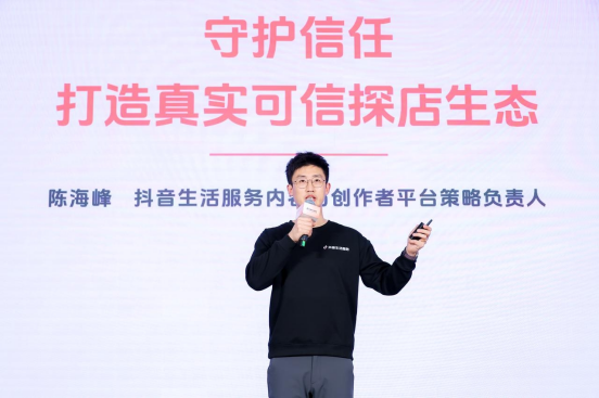 (抖音生活服务内容与创作者平台策略负责人陈海峰分享平台如何打造真实可信探店生态。)