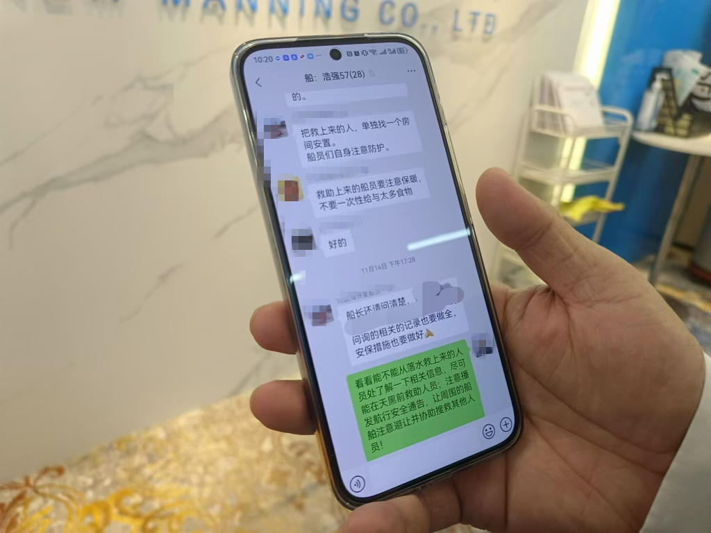 “那天15时45分,我正和同事交班,值班人员发现右舷1海里处有一群人被困海上,并且正在大声呼救。”孙义磊介绍,当时,他看到被困人员散落在海面上,其中有七八个人趴在一块泡沫上,还有几个人抱着桶浮在海面,只有少数人穿着救生衣,情况十分危急。船长李桂峰立即下令紧急停船,利用惯性缓缓靠近事发水域,同时迅速通过广播通知全体船员紧急集合,并向公司和港口部门报告,一场海上生死大救援迅速展开。