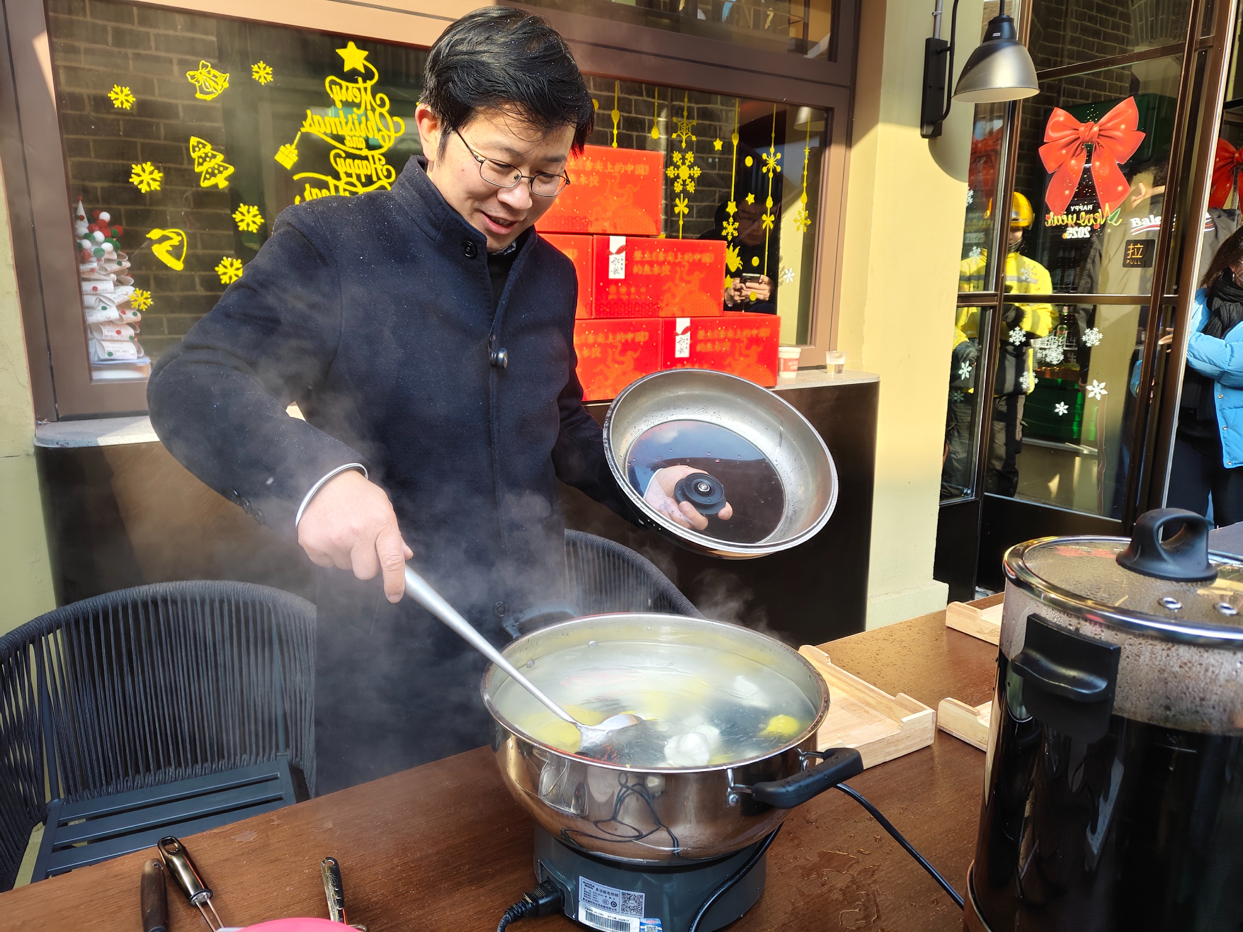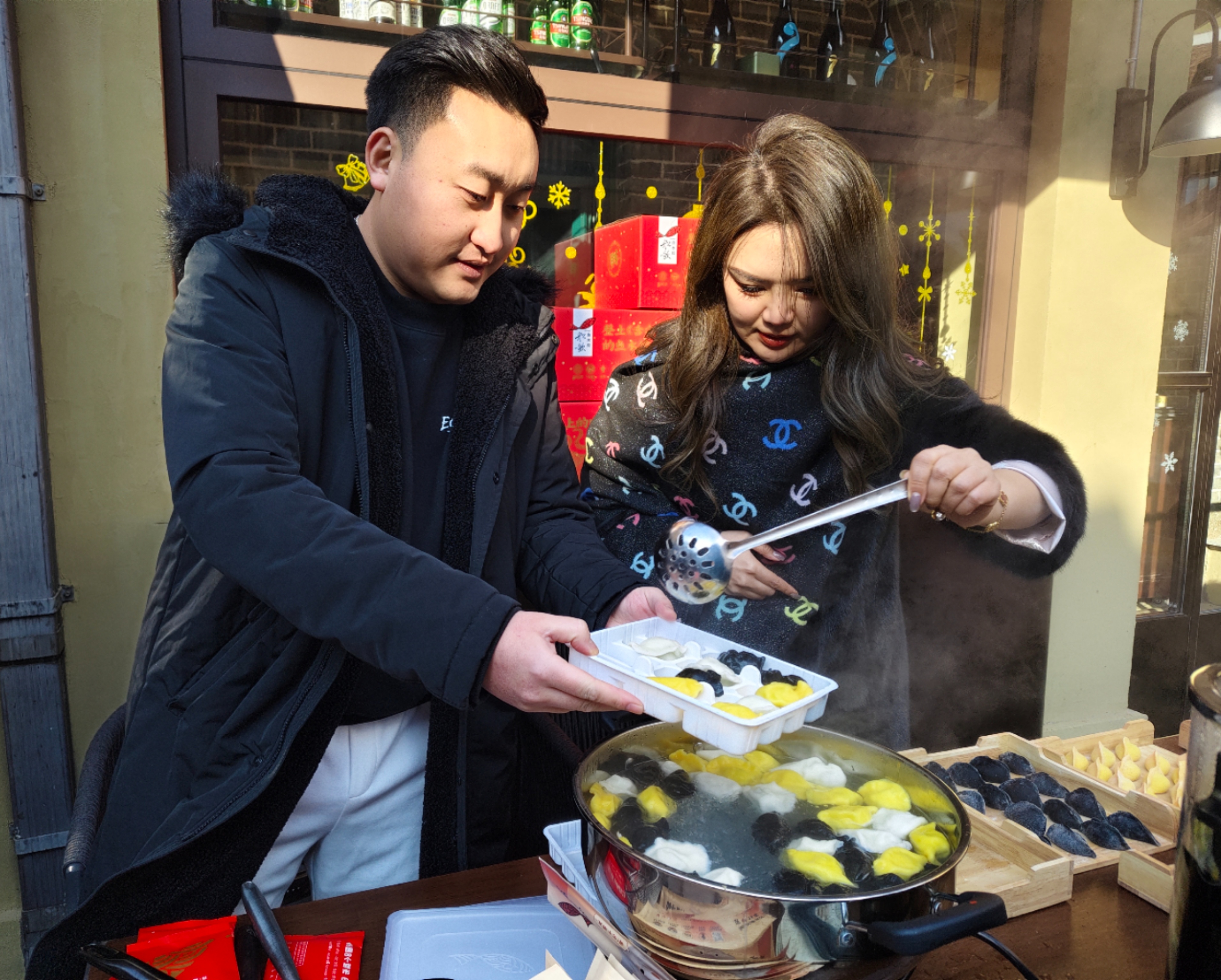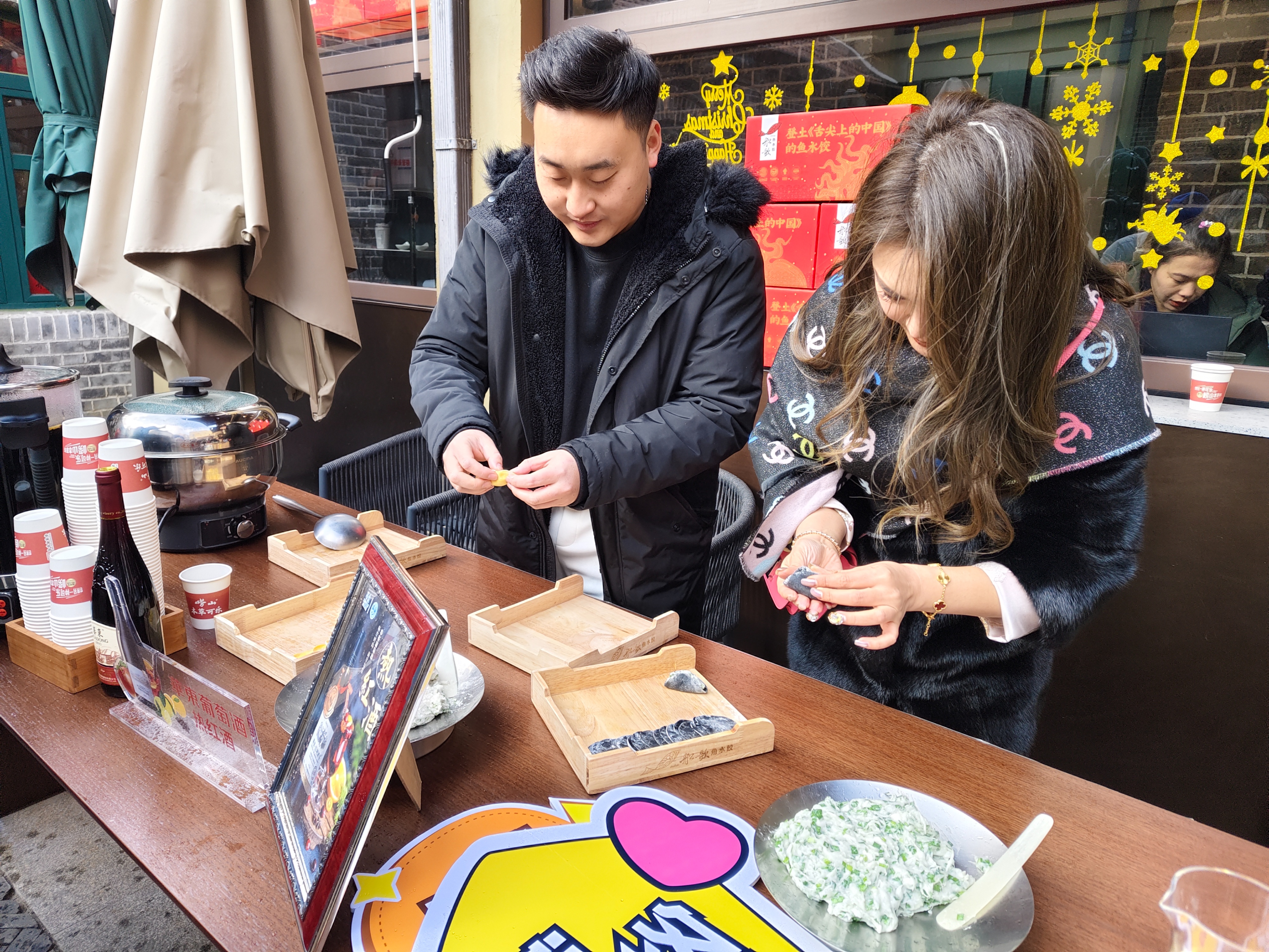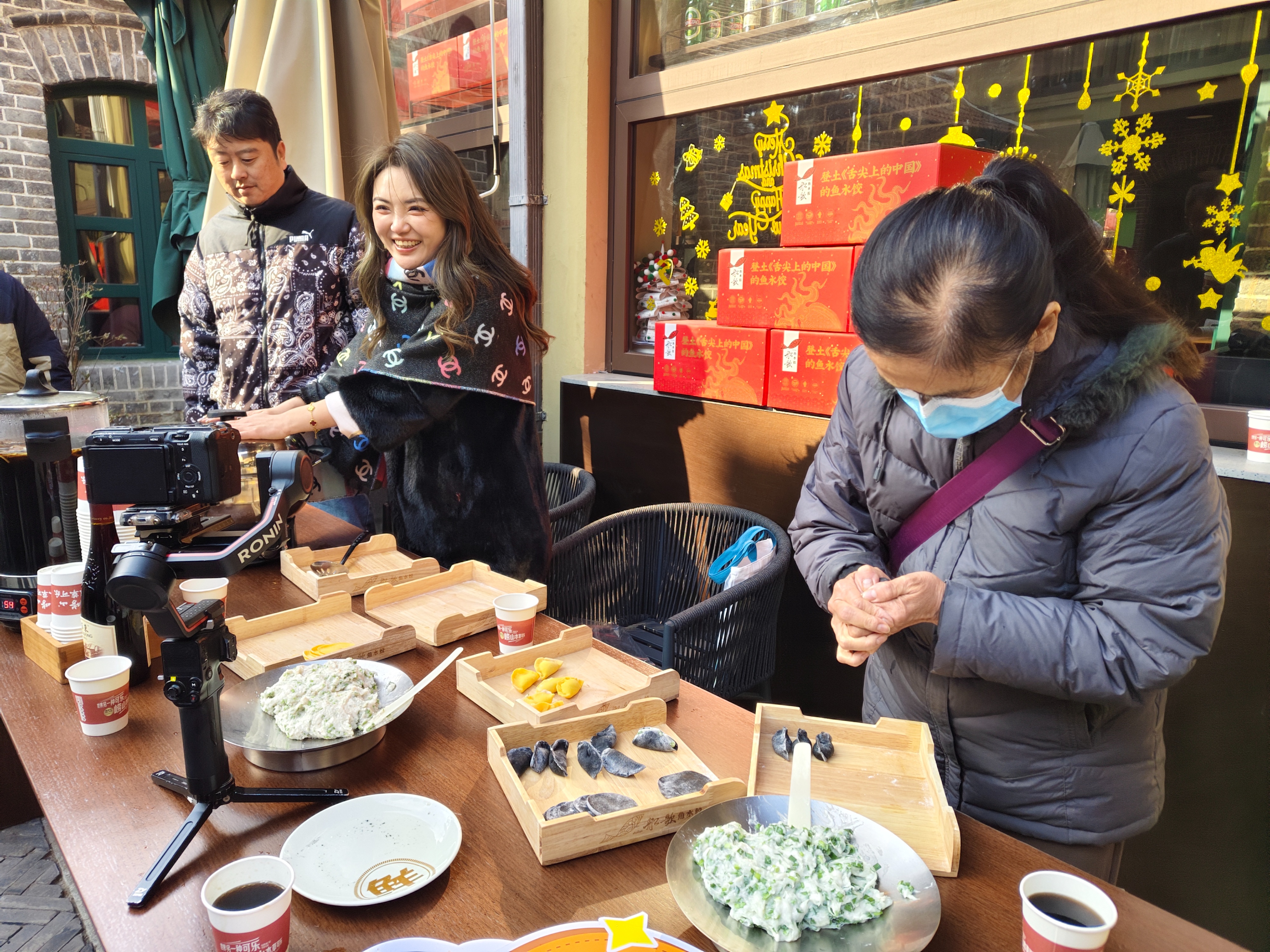 包饺子,煮温情。12月21日中午,青岛“网红天团”的@青岛远哥、@芝麻酱、@Dear紫琳、@饿魔老张4位成员来到大鲍岛文化休闲街区的一家饺子店,亲自动手包起了水饺,4人分工合作,个个手法娴熟,一手拿起饺子皮,一手填馅,双手合拢一捏,一个个饱满匀称的饺子就成型了,一双双灵巧的手把冬至情满满的包进了圆鼓鼓的饺子里。还有热心市民也主动加入进来,和青岛“网红天团”成员们一起包饺子,现场氛围十分融洽。@Dear紫琳一边包一边说:“瞧这皮薄馅足的饺子,看着就很有饱腹感。”@芝麻酱说道:“这饺子,不仅要好吃,更要暖心,希望让每个人都能感受到家的味道。”