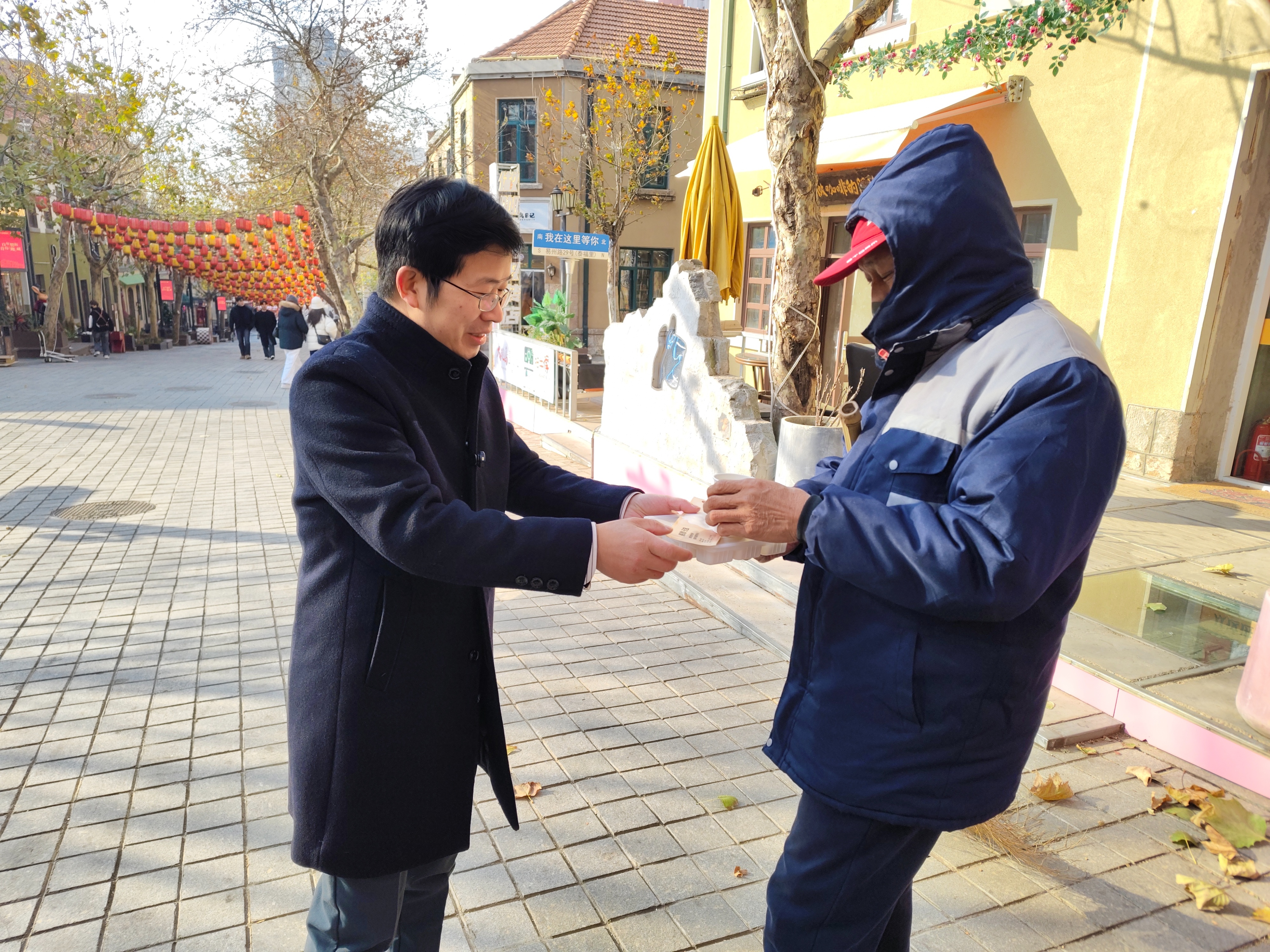 半岛网12月21日讯(记者 李京媛) 寒冬虽冷,暖意不减。12月21日,正逢冬至,青岛“网红天团”公益行动再出发,开展了一场别开生面的冬至送温暖公益活动。@青岛远哥、@芝麻酱、@Dear紫琳、@饿魔老张4位青岛“网红天团”成员,走进大鲍岛文化休闲街区,为街区及周边的外卖小哥、环卫工人等户外工作者送上一份崂山热可乐和热气腾腾的水饺,将温暖传递到岛城的每一个角落,为这个冬日增添一抹暖心色彩。