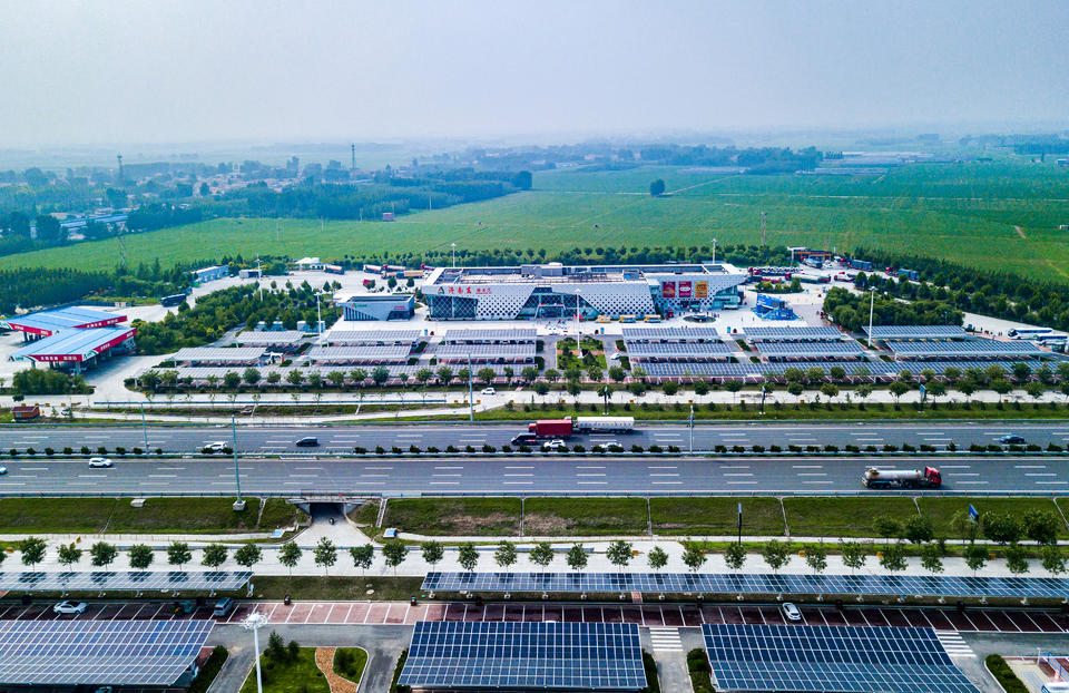 刚刚建成通车的济菏高速改扩建项目是全国首条改扩建零碳高速,从空中俯瞰,这条路犹如一条光伏巨龙。公路两旁,一排排光伏板覆盖在边坡上,将太阳能源源不断地转化为电能;服务区内的屋顶、车棚遍布光伏板,将绿能注入充电桩,服务往来新能源车辆……济菏高速合理利用路侧边坡、匝道圈、服务区、收费站等周边空地、建筑屋顶,建设全场景、多形式的光伏发电,全线光伏装机容量达30兆瓦。