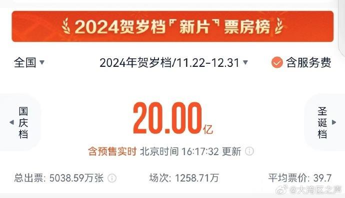 2024年贺岁档电影票房破20亿