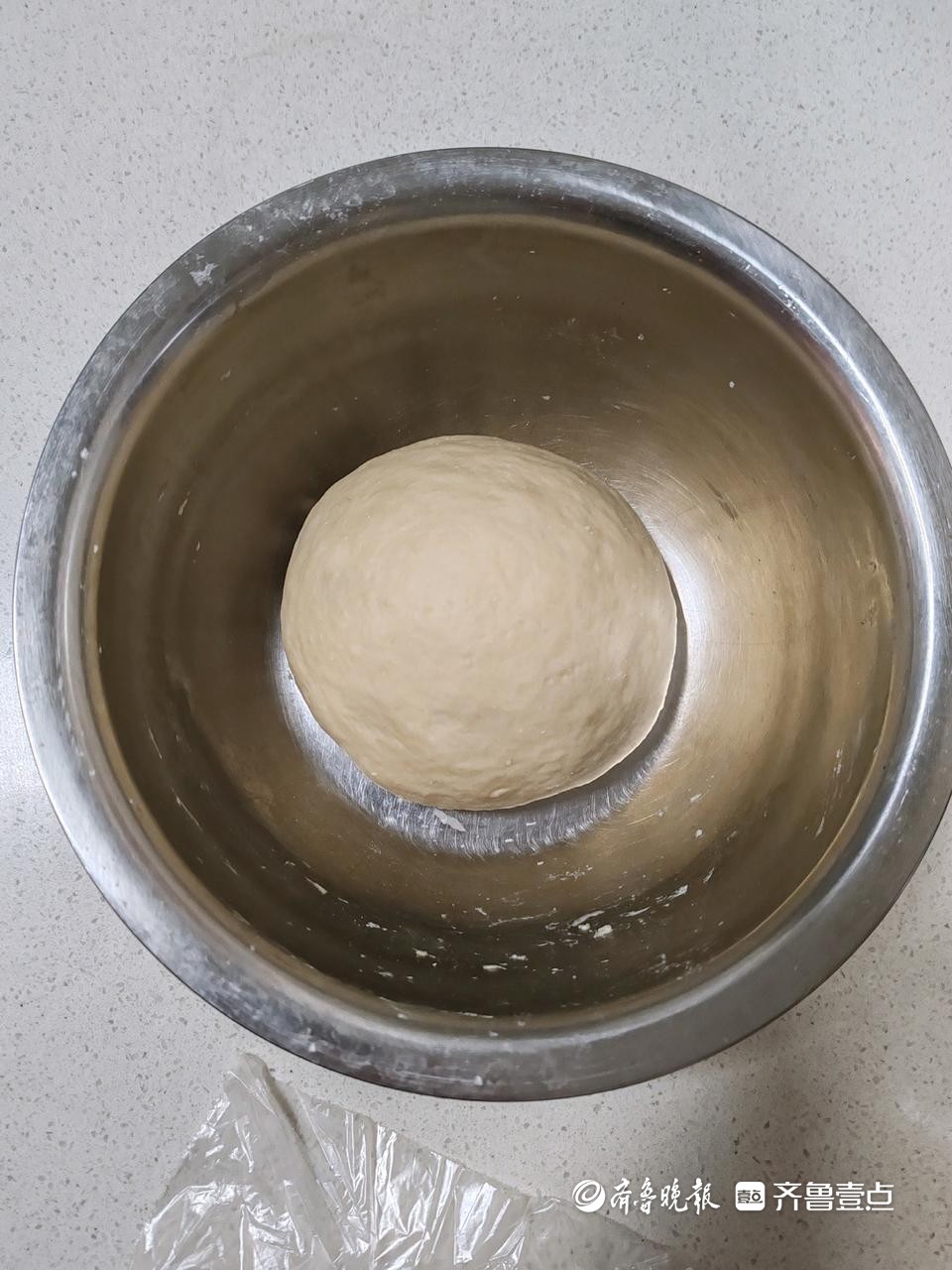 1.300g面粉放盆里,加酵母3g、盐3g,搅拌均匀,打入一个鸡蛋,再加入花生油15ml。加入150ml牛奶,和成较软的面团,放案板上多揉一会,表面涂上一层花生油锁住水分,盖上保鲜膜。可以晚上把面发上,早上起来面团就发至2倍大了。