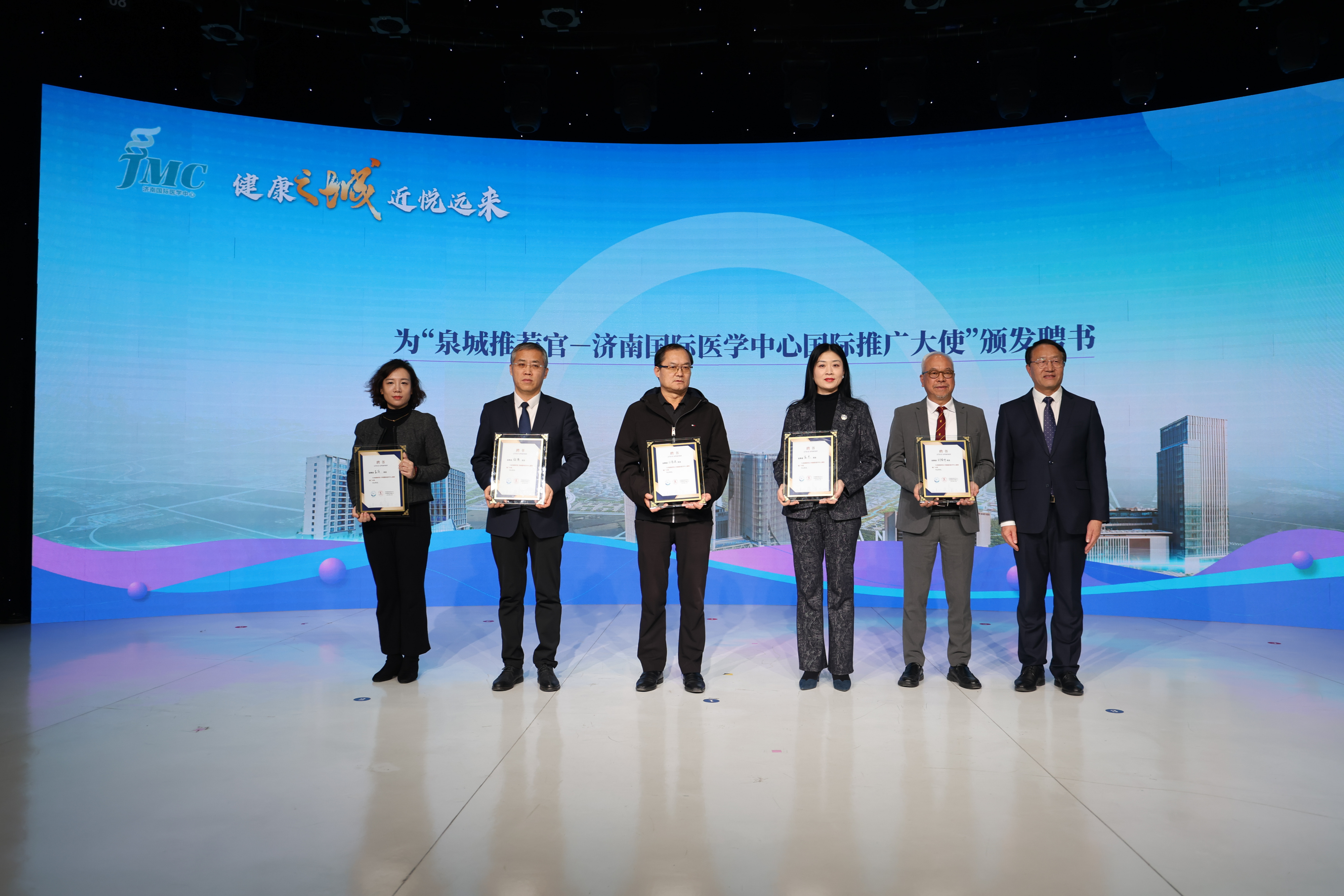 特别是,为加大医学中心国际化项目招引力度,提升国际传播能力,现场特聘请韩国中小企业振兴公团东北亚本部长金相佑、泰莱生物创始人兼首席执行官刘耀坤、金砖国家健康医疗国际合作委员会中国事务副主席蒿杰、美国慧博科创企业公司联合发起人汪春波、荷兰科技企业家协会高层次人才委员会副会长好强、德国山东商会会长孟萌等6位海内外专家为“泉城推荐官——济南国际医学中心国际推广大使”,市委宣传部副部长、市政府新闻办主任赵民为其颁发聘书。同时,济南日报报业集团总编辑、党委副书记、副董事长张楠与医学中心管委会副主任徐强共同签署战略合作协议,济南国际传播中心将立足医学中心实际,深挖特色资源,整合优势内容,推出一批内容“出彩”、形式“出新”、传播“出圈”的融媒体产品。