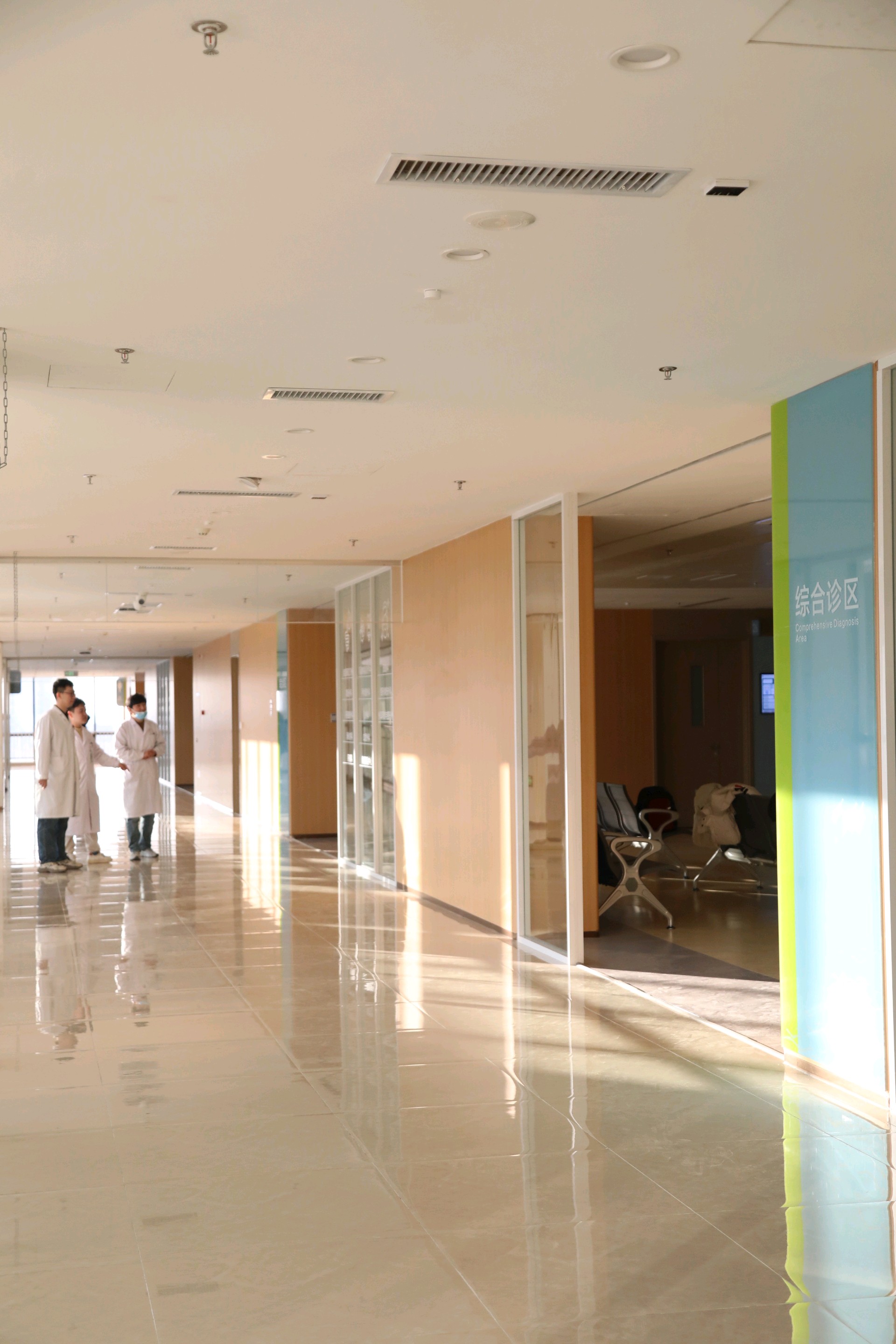 综合诊区涵盖29个学科,按照器官部位相近的原则,开设骨科运动区域、心胸区域、神经区域、泌尿区域、腹部区域、两腺内分泌区域、整形美容区域七大片区,同时还有儿外科、血管外科、肿瘤防治中心、风湿免疫科、血液内科等。