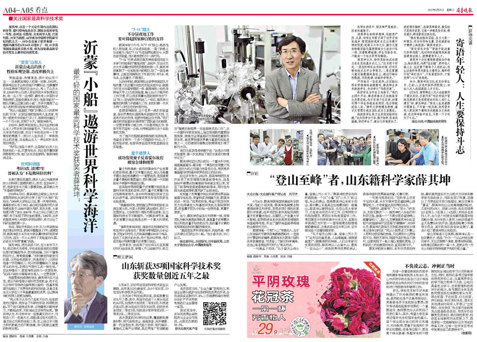 这一年,我们见证了“登山至峰”者的荣耀时刻:考研3次、读博7年,曾被认为“不是做科研的料”的薛其坤,成为最年轻的国家最高科学技术奖得主。艰难开局、勤奋翻身,抱着做出成绩的信念,不分昼夜工作,“沂蒙小船”得以自由遨游世界科学海洋。