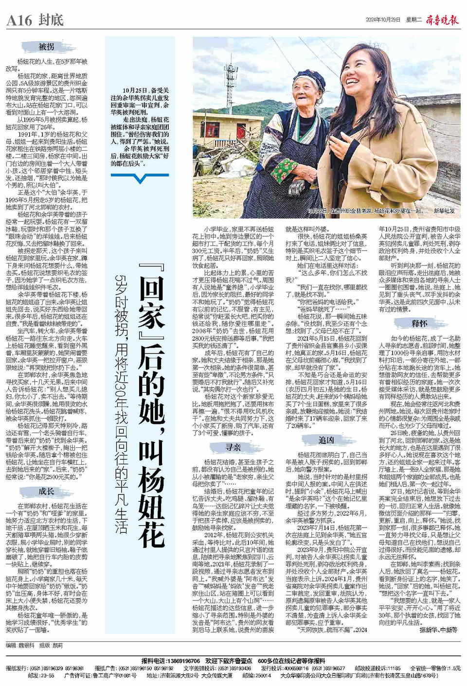 对于很多人来说,杨钮花真正走入视线,是2021年,那一年,出生在贵州织金、5岁被拐的她在寻亲26年后,终于找到自己原本的家和亲人,但亲生父母早已抱憾离世。同年,她指认了人贩子余华英。