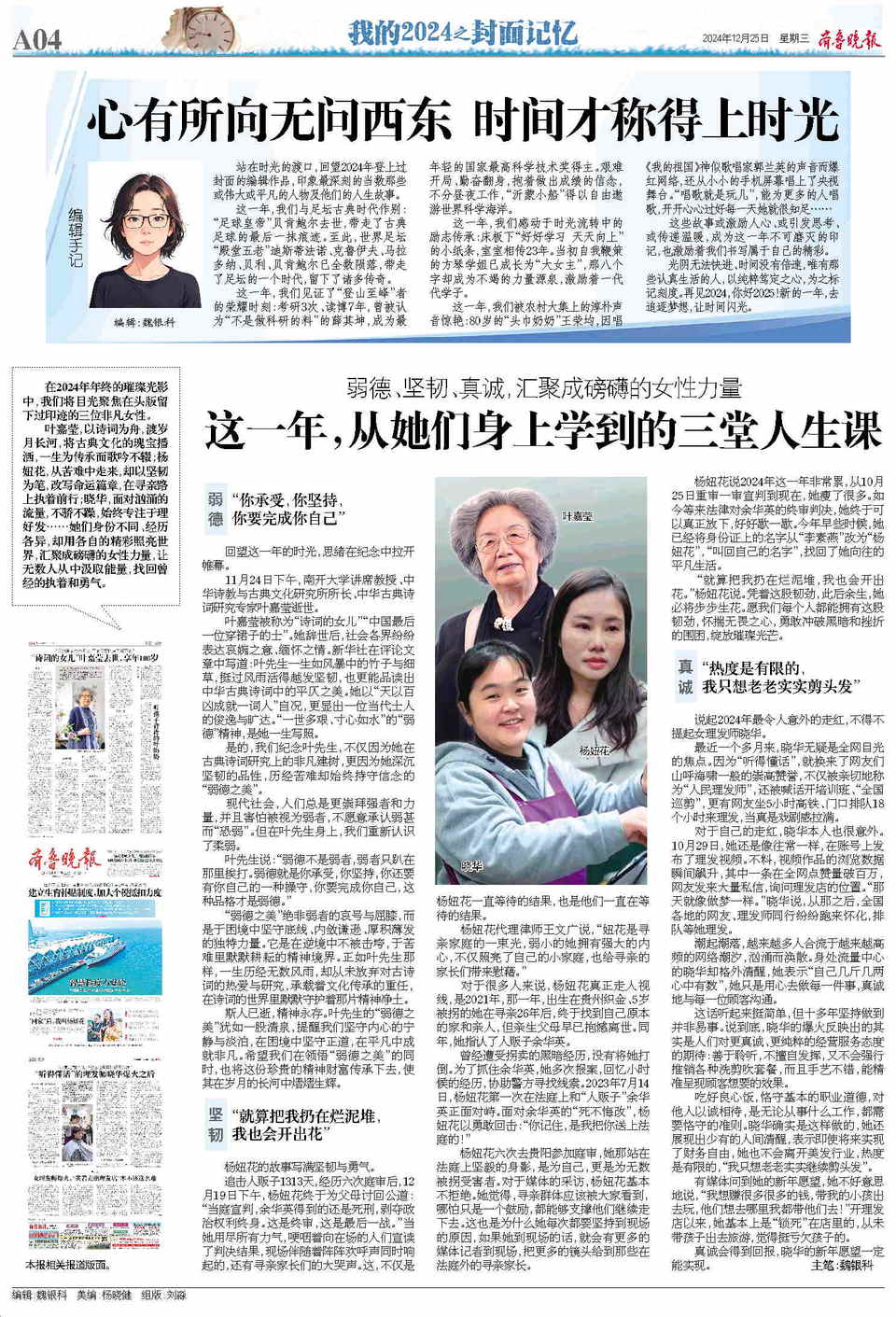 在2024年年终的璀璨光影中,我们将目光聚焦在头版留下过印记的三位非凡女性。