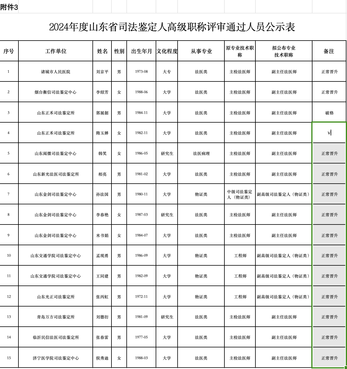 2024年度山东省司法鉴定人高级职称评审通过人员公示表