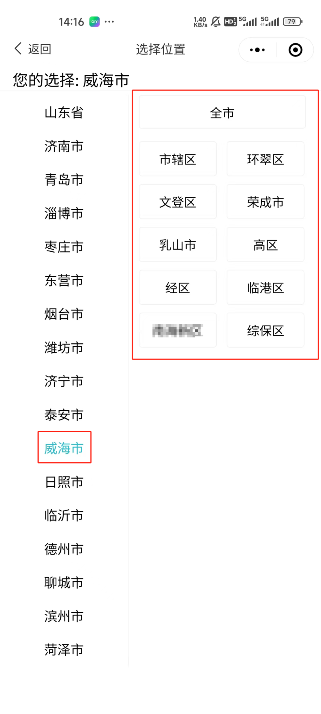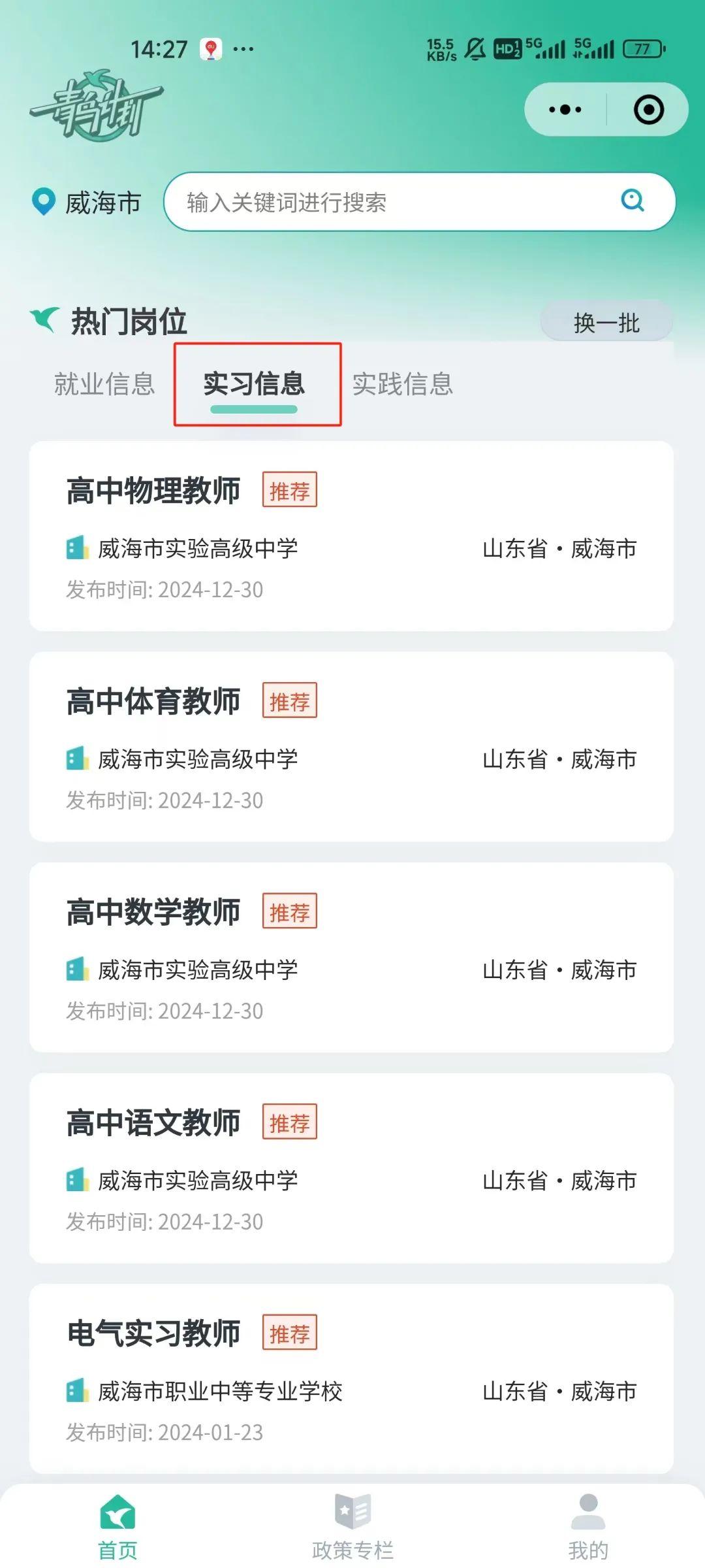 3.回到首页 选择“威海市”—“实习信息”