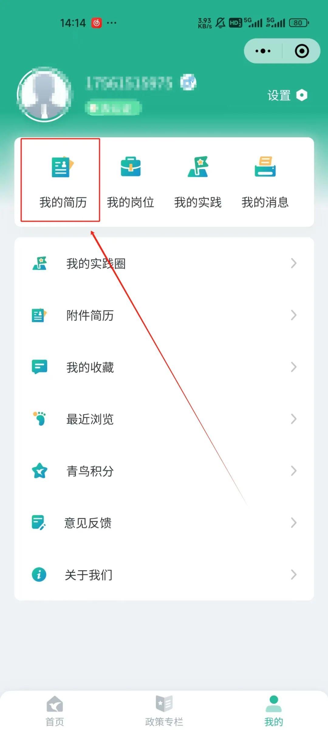 2.点击右下角“我的”—“我的简历”填写信息