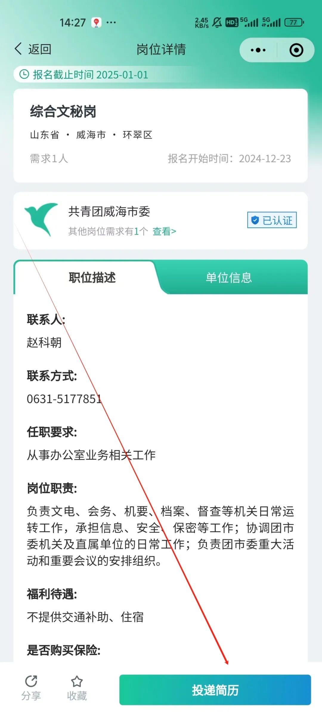4.找到心仪合适岗位后,选择“投递简历”