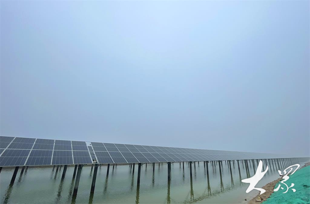 发展绿色能源产业,滨州市具备优越的条件。滨州沿海有大面积的沿海滩涂、水面、盐碱地,光伏等新能源设备建设空间充裕。沾化区宏烨新能源2GW渔光互补光伏发电项目利用当地海域滩涂和海面,把渔业养殖与光伏发电相结合,鱼塘水面上方架设光伏板阵列,光伏板下方水域养殖鱼虾,形成“上可发电、下可养鱼”的新模式,光伏发电、水产养殖、工业制盐相结合,充分利用了土地资源,实现了能源与养殖、工业协同发展。