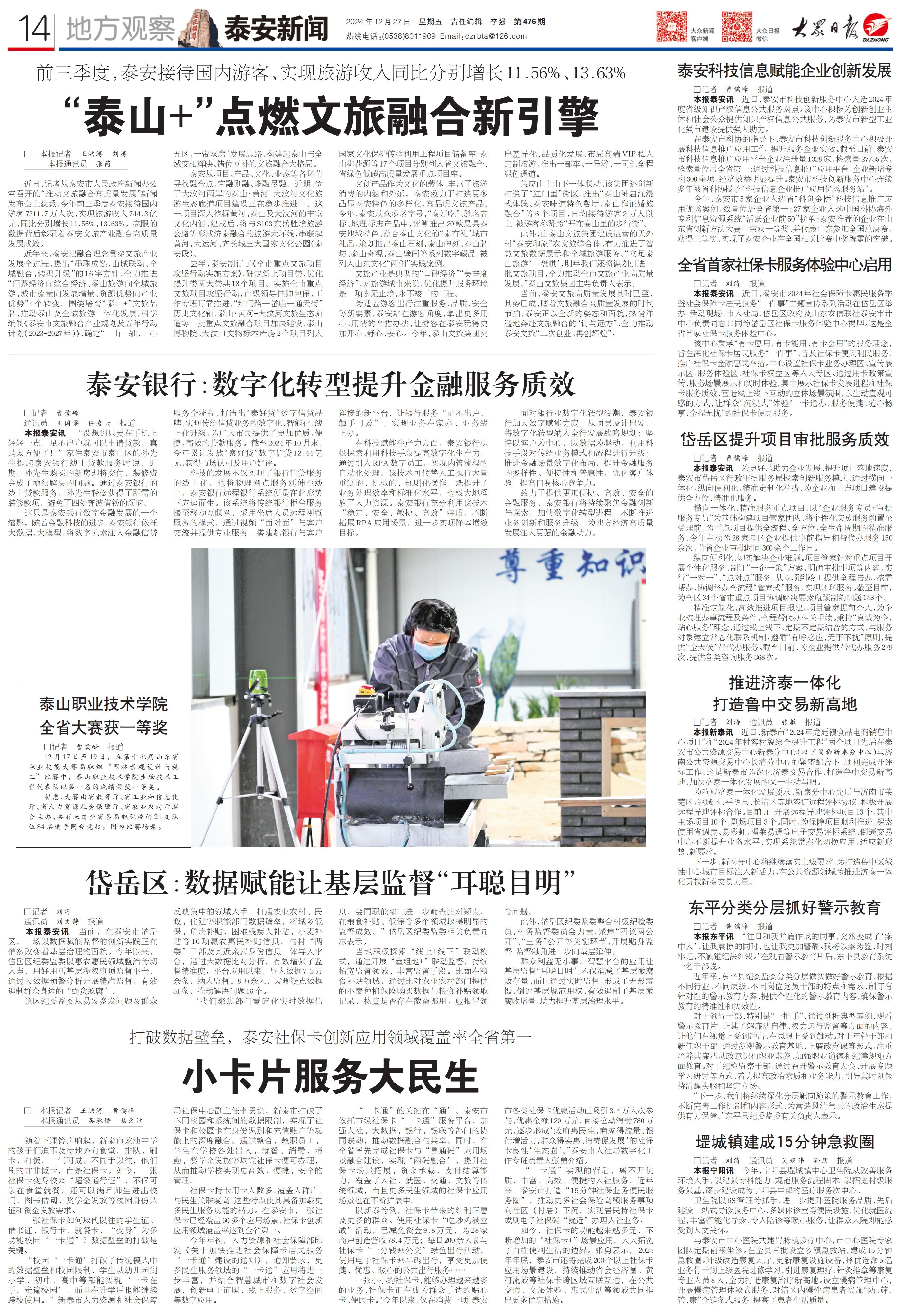 大众日报·泰安一周:宁阳工业、岱岳区社会治理上头版,“泰山+”点燃文旅融合新引擎