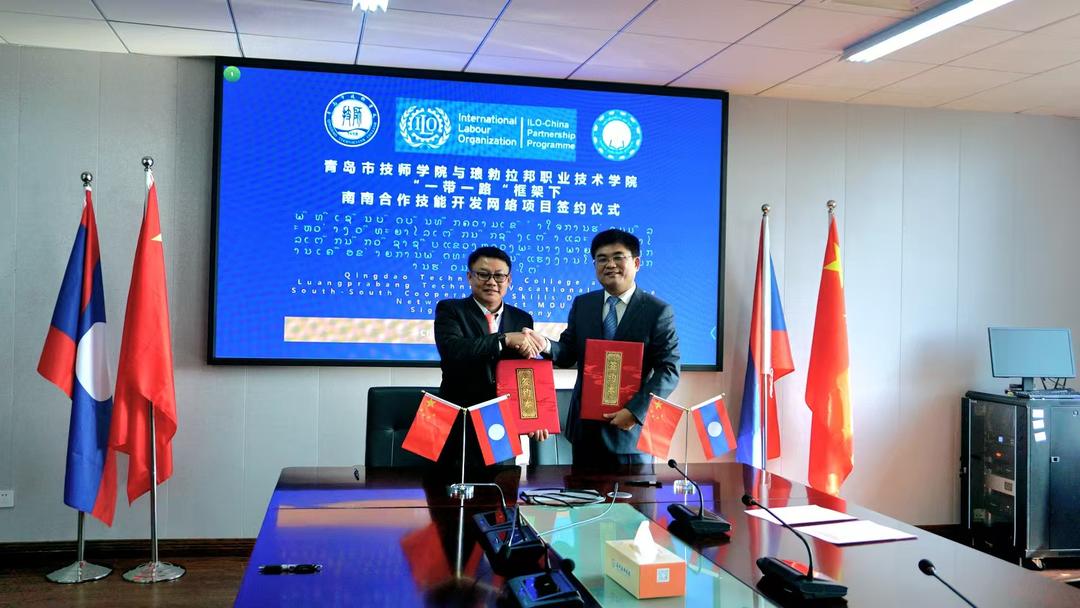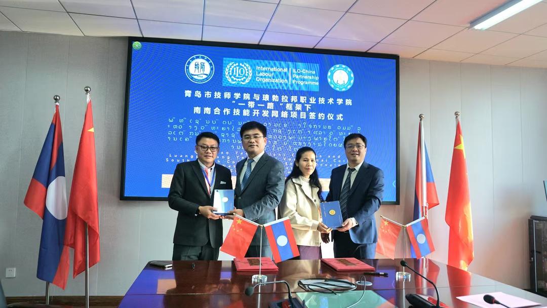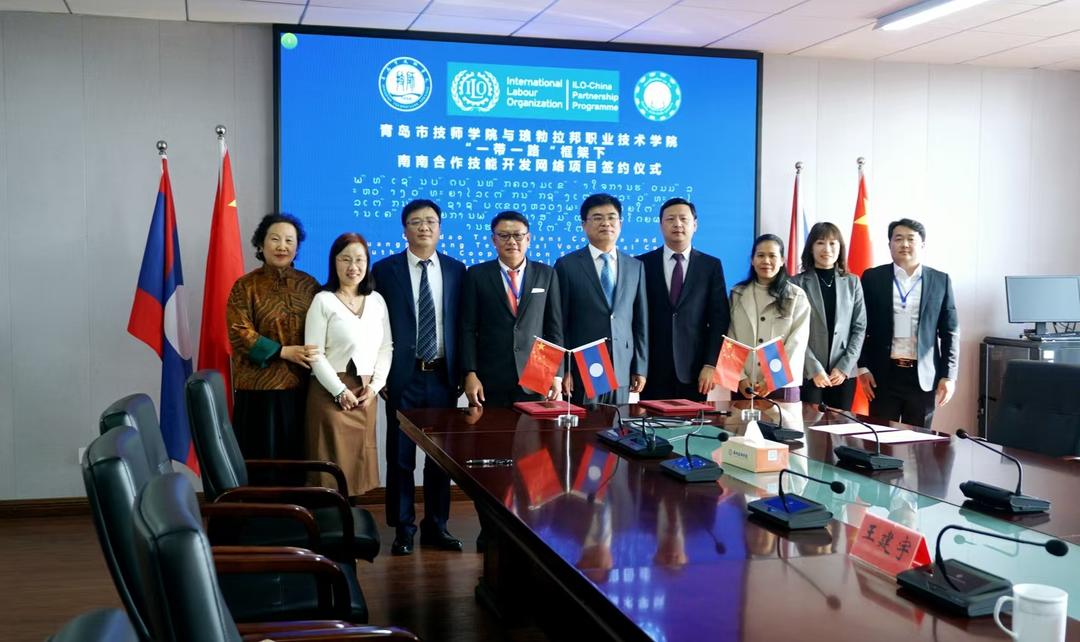 活动期间,青岛市技师学院与琅布拉邦职业技术学院签署了“一带一路”框架下南南合作技能开发网络合作谅解备忘录。签约仪式由国际劳工组织/老挝中国伙伴关系项目协调员基奥万莱·潘塔冯女士主持。人力资源和社会保障部国际合作司二级巡视员姜炜,国际劳工组织/中国伙伴关系计划项目办公室主任田丰,人力资源和社会保障部国际合作司技术合作处一级调研员王建宇,老挝琅布拉邦职业技术学院院长维拉蓬·西邦洪,青岛市技师学院党委副书记、院长韩东,党委委员、副院长刘兴一参加。