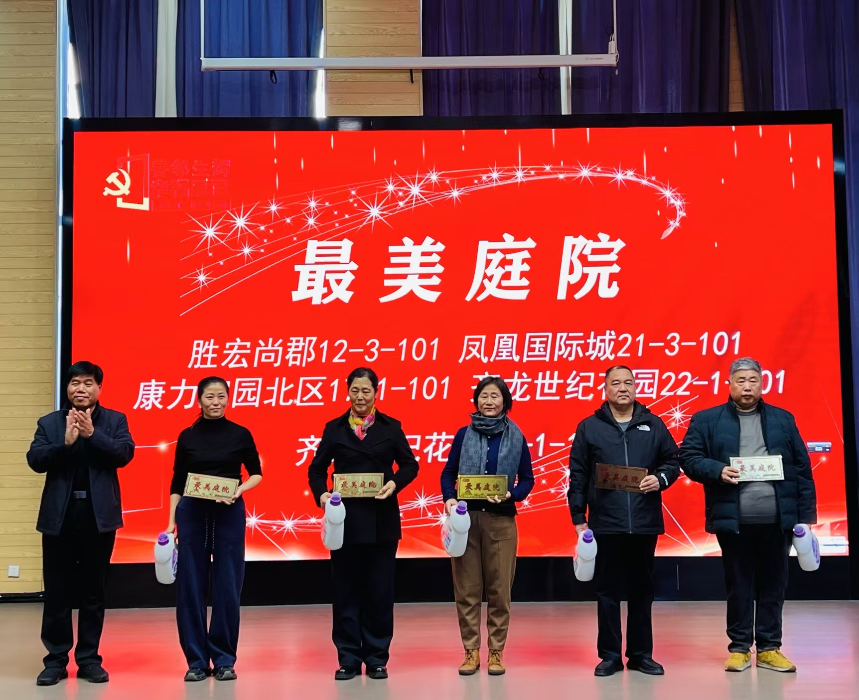 中间穿插着精彩有趣的颁奖环节,大家更是欣赏中期待。通过自荐和推荐的方式,新辉社区对年度优秀个人和集体、“最美庭院”“最美楼道”“最美新辉人”“幸福合伙人”以及“优秀社区社会组织”进行年度表彰,进一步肯定了他们对社区的奉献与担当。他们用自己的实际行动活跃在社区的各个角落,为社区的发展出谋划策、贡献力量。通过表彰先进,鼓励更多的人登上荣誉榜,参与社区建设,成为大家学习的榜样。