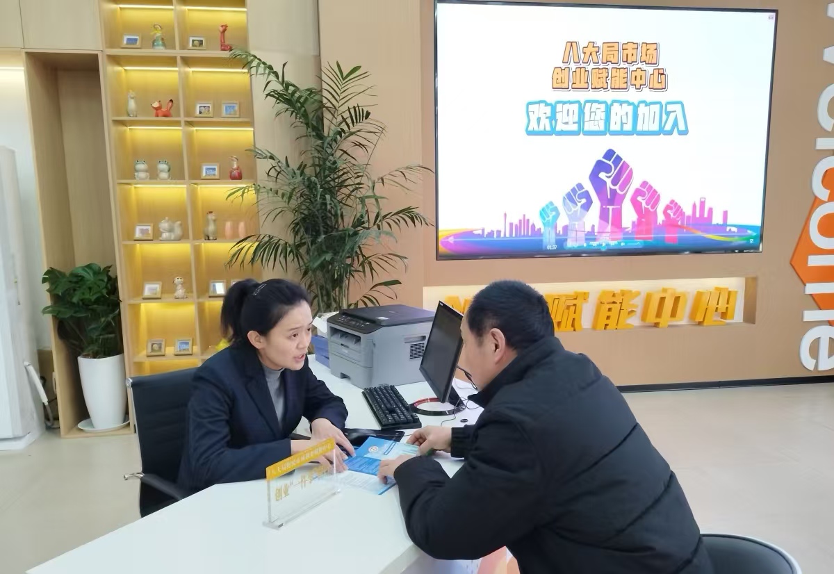而八大局便民市场创业赋能中心暨便民服务点位于八大局书画苑内,设有创业服务、政策宣传、创业沙龙、商务洽谈等功能分区。该中心将打造“1+2+3+N”全生态服务体系,通过“建设一个阵地、搭建两个平台、拓展三种渠道、提供N项服务”的服务模式,为创业者和市场商户提供便捷高效的“一站式”创业服务,搭建起全方位、多层次的优质创业平台。