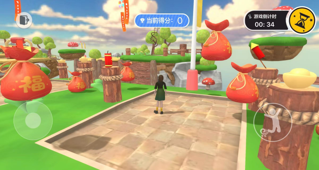 通过左右摇杆控制人物移动,接住从天而降的福袋(吃到地上的面包还可以身形变大哦!),福袋积分达到5分就有机会获得现金红包