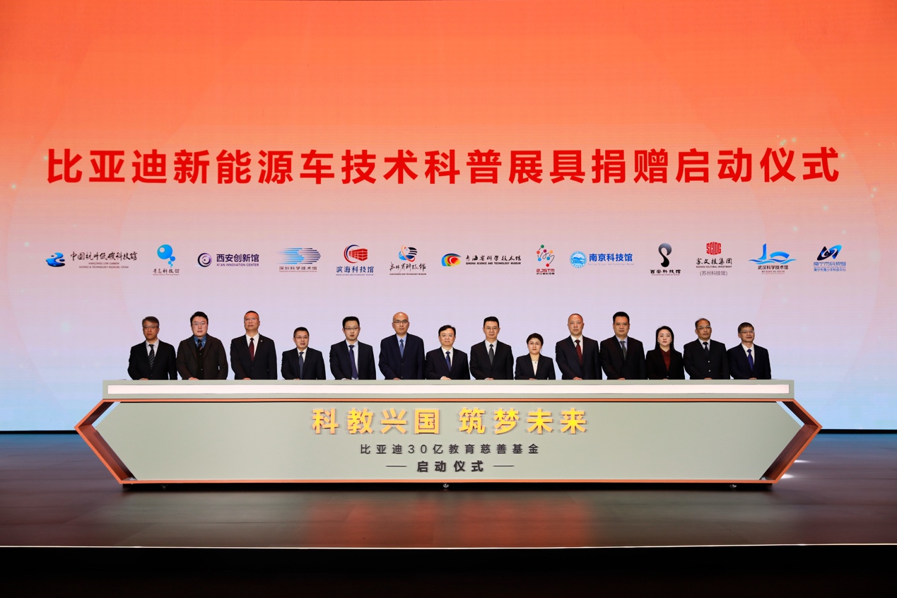 12月30日,比亚迪在深圳总部举行了30亿教育慈善基金启动仪式,比亚迪股份有限公司董事长兼总裁王传福与来自全国的35所高校代表及28所科技馆、博物馆代表共同启动比亚迪30亿教育慈善基金捐赠。
