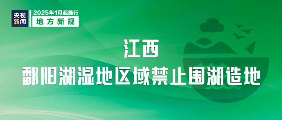 新修订的《江西省湿地保护条例》自2025年1月1日起施行。条例明确鄱阳湖湿地区域禁止围湖造地,禁止擅自修筑矮圩、拦汊筑坝、围堰挡水,已退田还湖的地域禁止新建居民点或者其他永久性建筑物、构筑物。
