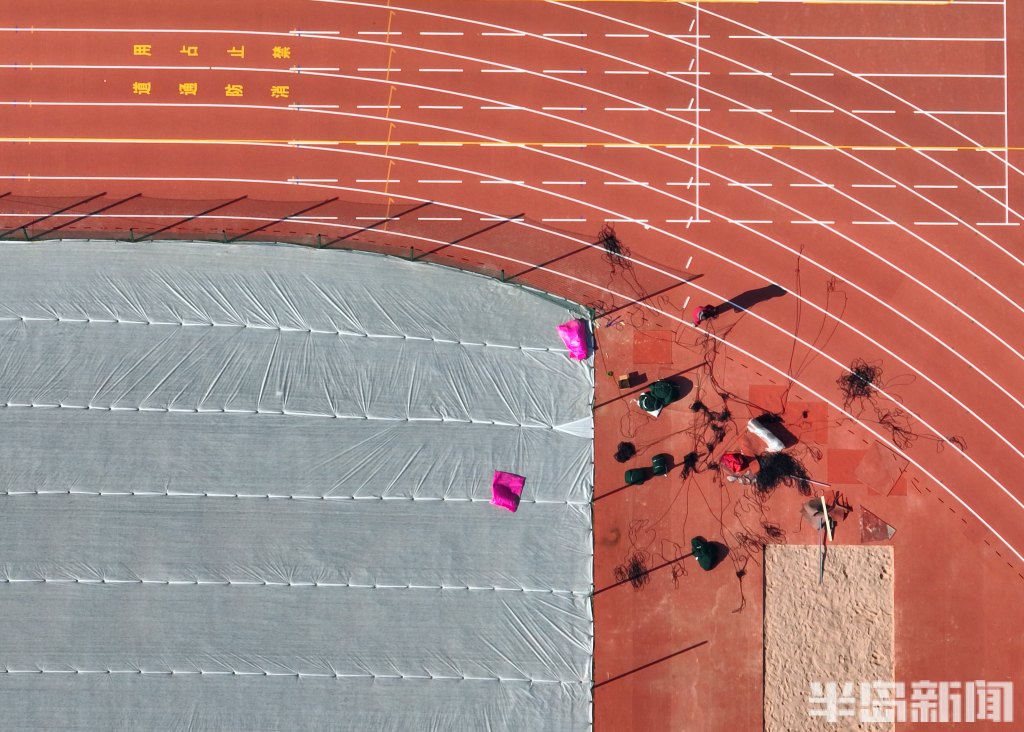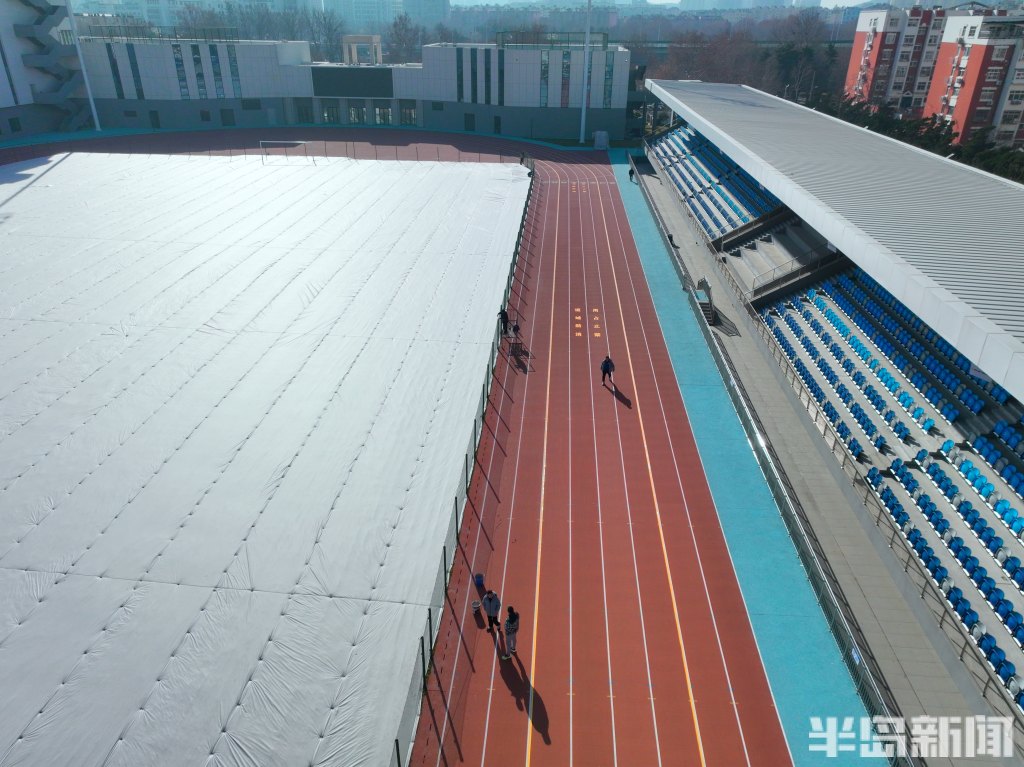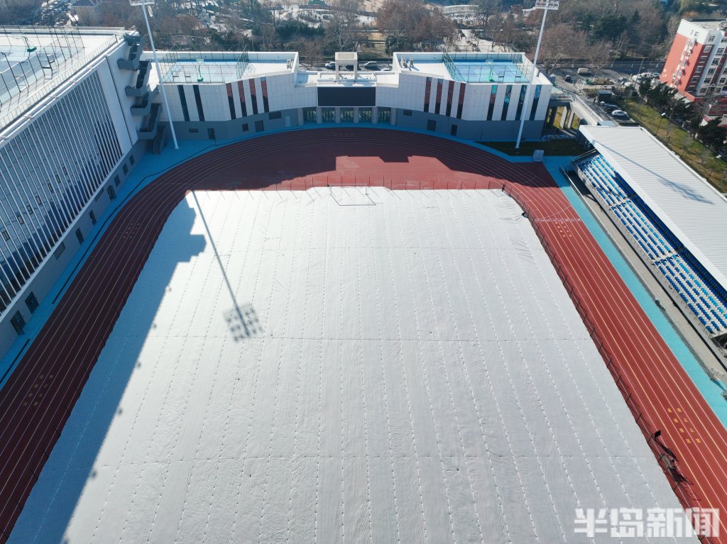 记者在现场注意到,海泊河全民健身中心内,工作人员已经为足球场天然草坪进行覆膜保温,跑道设施正在做最后收尾工作。据了解,从2025年1月1日,室外田径场地将正式对外开放,包括400米跑道、健身路径等都会按照每周不少于35小时、节假日每天不少于8小时,对市民免费开放。
