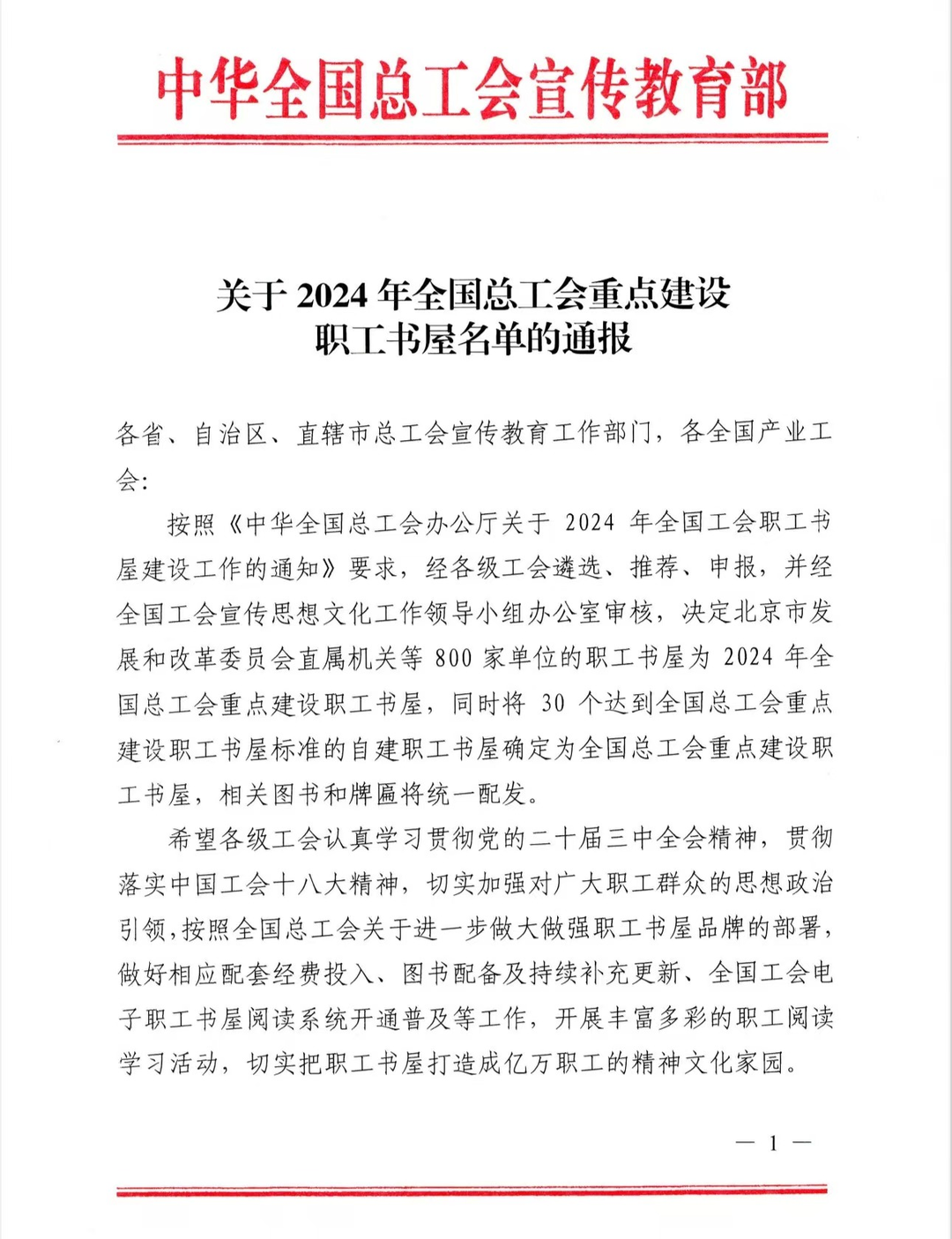 近日,中华全国总工会宣传教育部下发《关于2024年全国总工会重点建设职工书屋名单的通报》,枣庄职业学院获全国总工会重点建设职工书屋。这一荣誉是对学院图书资源建设、阅读推广工作的高度认可,更是对学院持续推动文化阵地建设、提升职工综合素质努力的肯定。