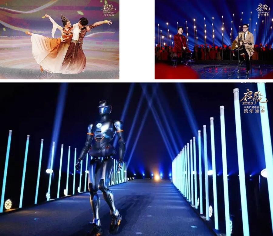 在视觉表达上,晚会打造了沉浸式观演空间,呈现人、景、情相互交融的多元主题演区;还结合XR/AR虚拟现实等科技手段,融入机器人、无人机表演,打造“竖屏看跨年”等新媒体产品,为受众提供更具沉浸感的视听新体验。