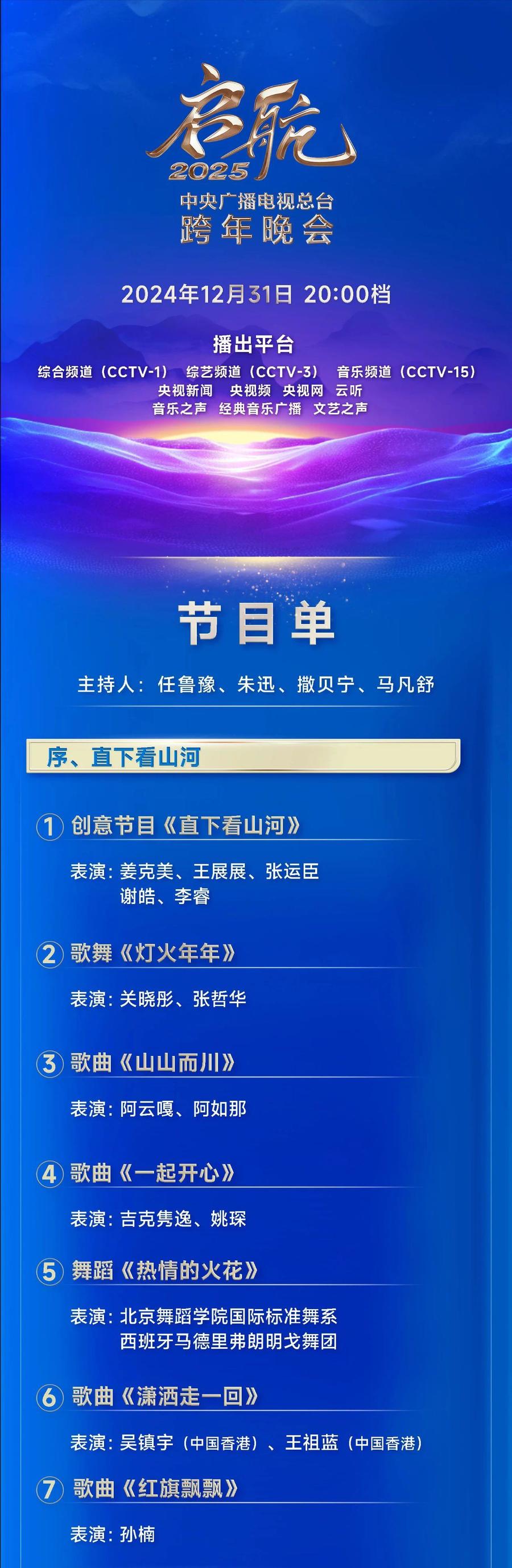 今晚播出!《启航2025——中央广播电视总台跨年晚会》节目单公布