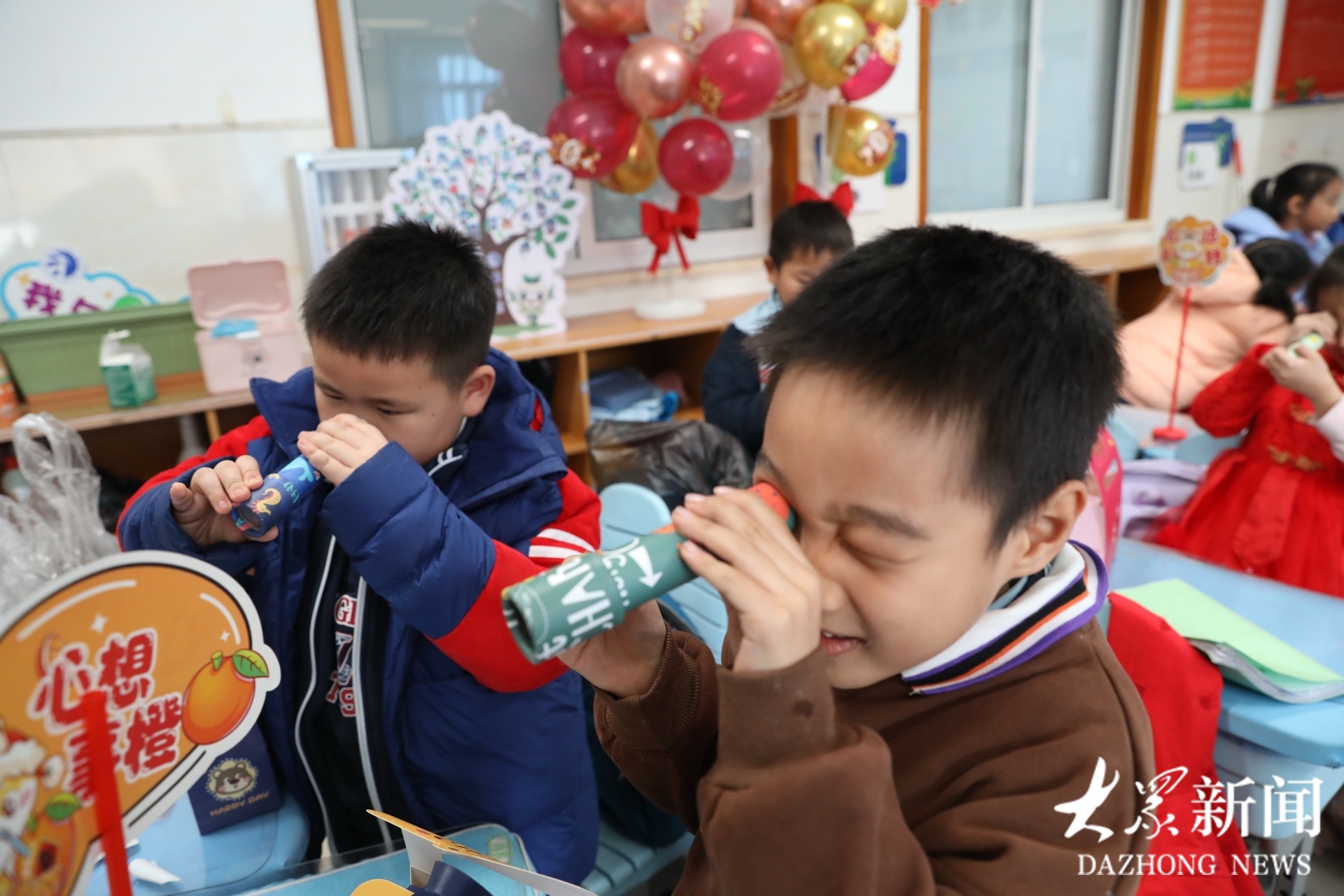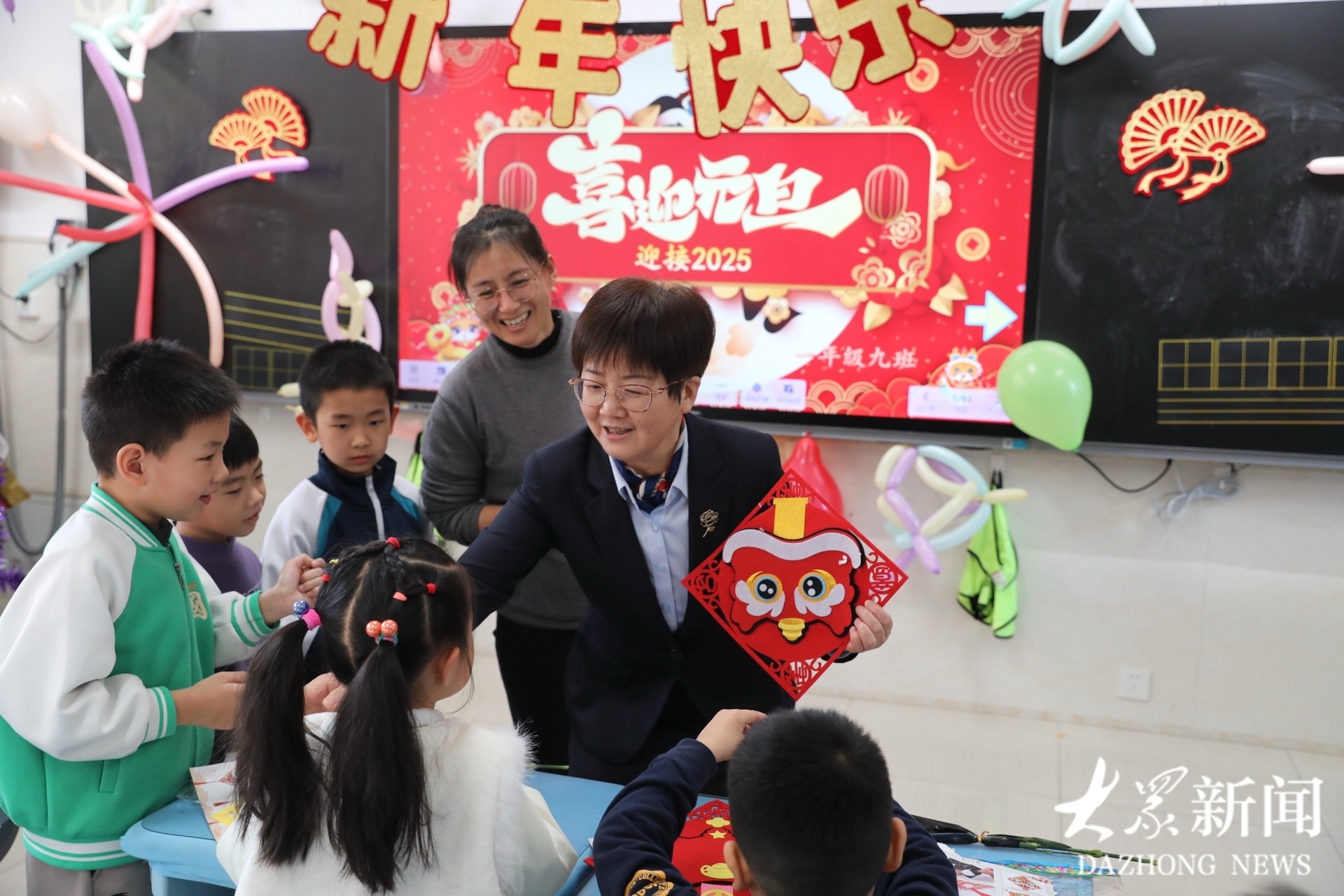 DIY舞狮新年挂饰,接龙游戏,才艺展示,为2025立个Flag……12月31日,山师大二附中小学部各个教室欢快热闹,学生在老师和家长的陪伴下,体验丰富文体活动,收获新年礼物,喜气洋洋,迎接2025。