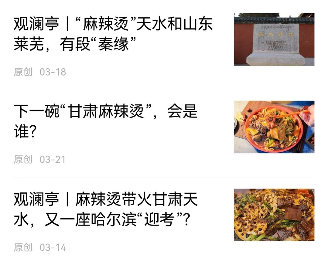 面对一碗甘肃麻辣烫让文旅市场“热辣滚烫”,“观澜亭”推出《麻辣烫带火甘肃天水,又一座哈尔滨“迎考”?》《“麻辣烫”天水和山东莱芜,有段“秦缘”》《下一碗“甘肃麻辣烫”,会是谁?》系列网评,全方位热点解读,既剖析小城文旅困境,又立足全国看文旅,发出冷静声音。