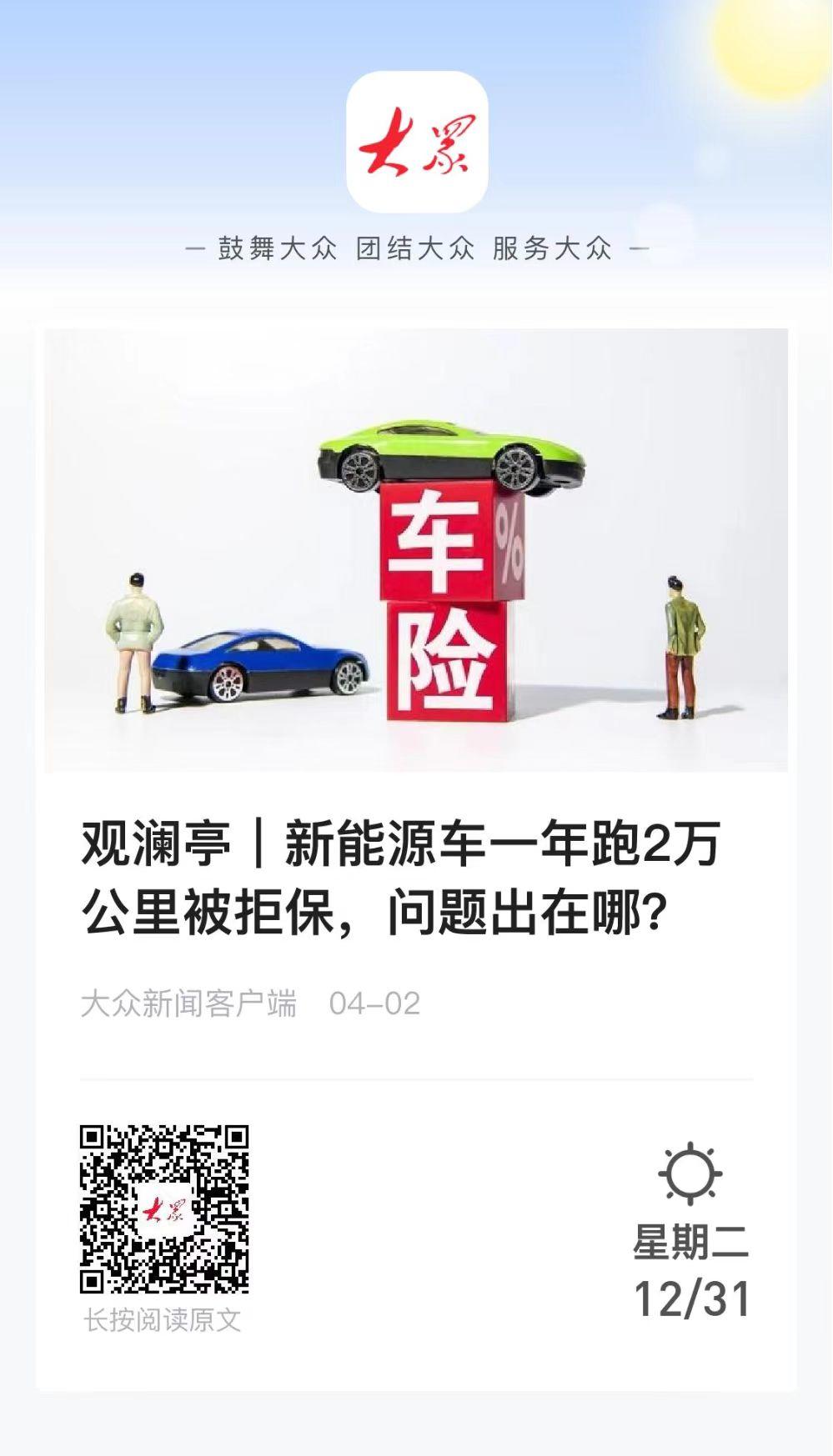观澜亭|新能源车一年跑2万公里被拒保,问题出在哪?
